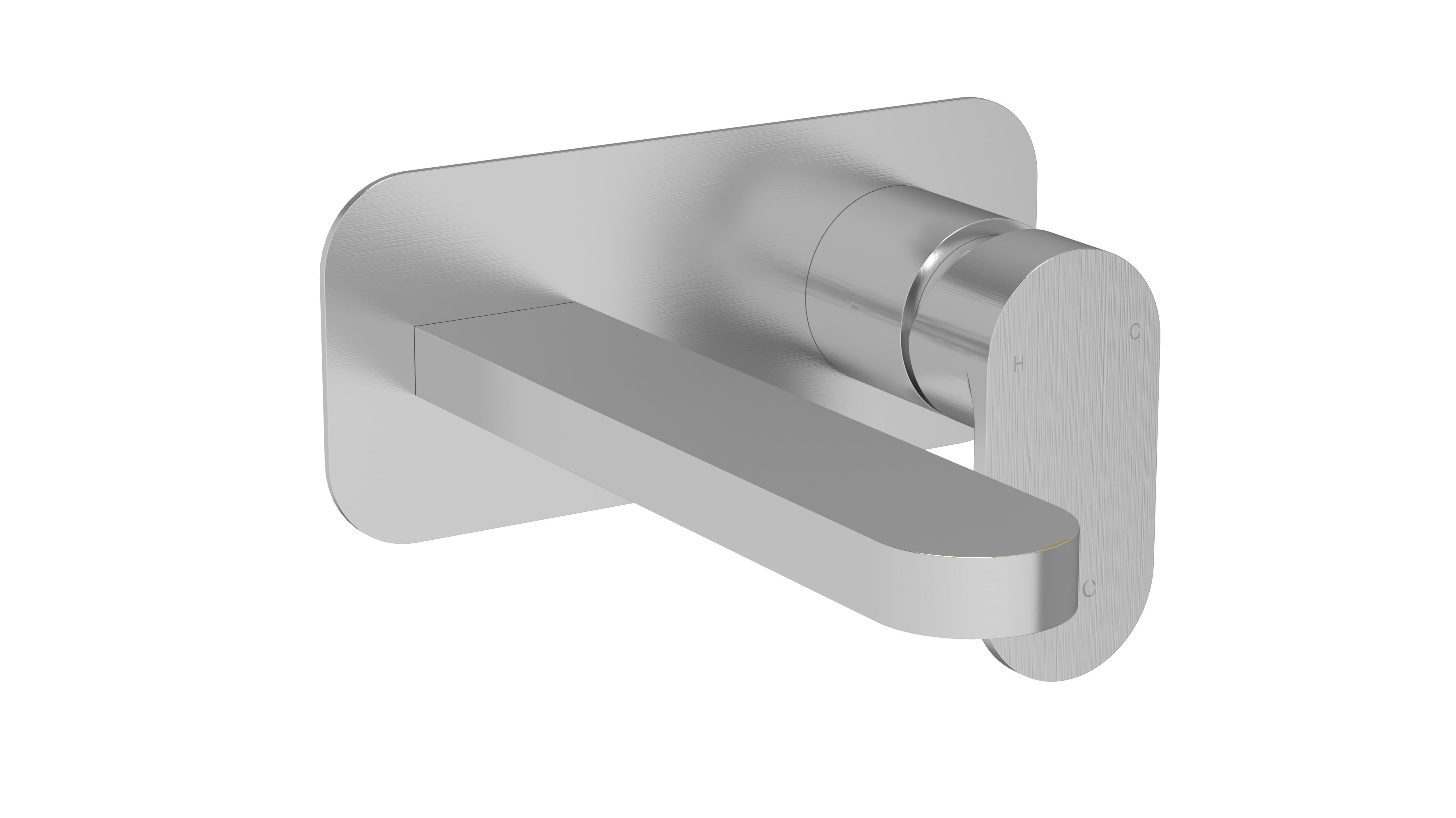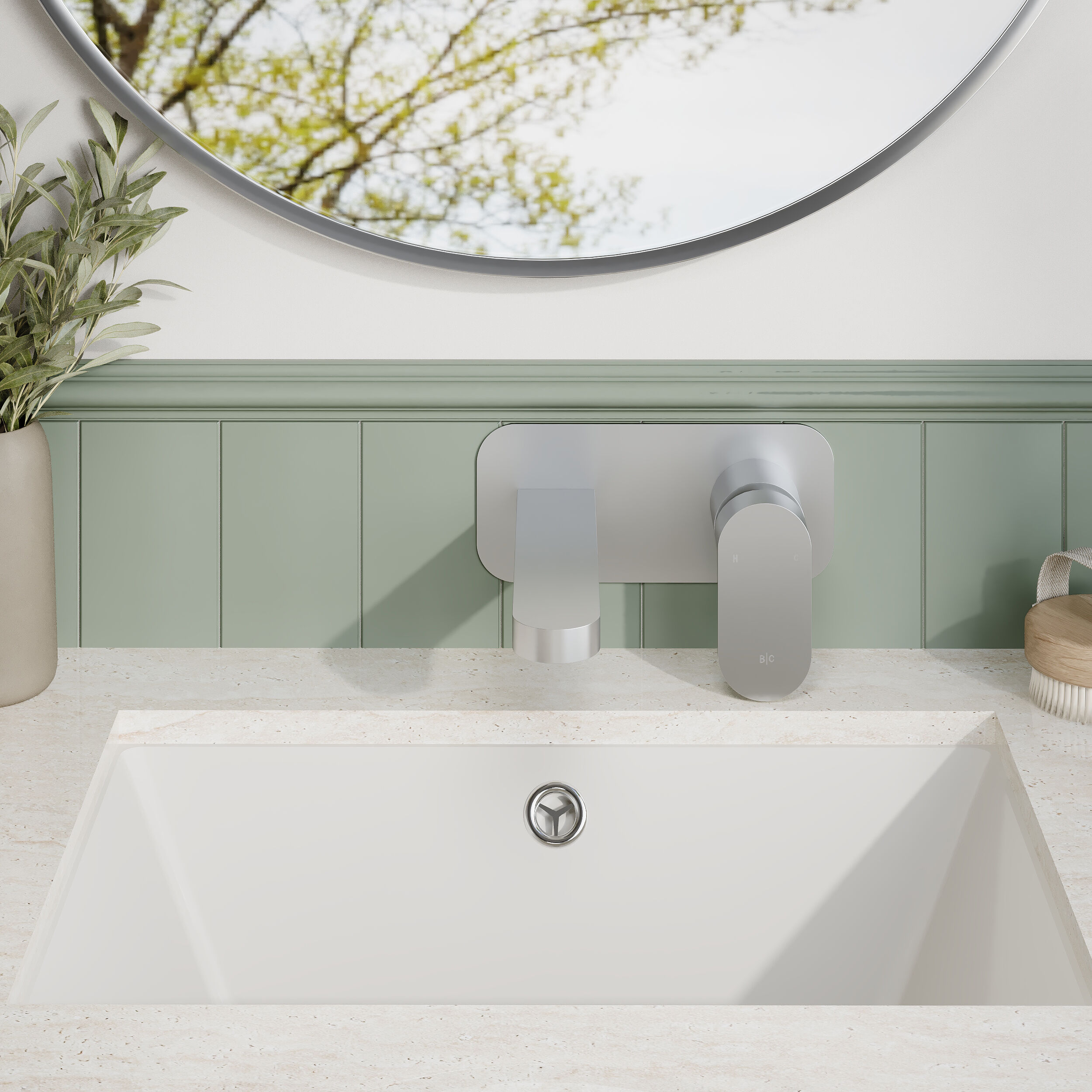 BC Designs Chelmsford Wall Mounted 2 Tap Hole Basin Mixer With Plate - Brushed Chrome