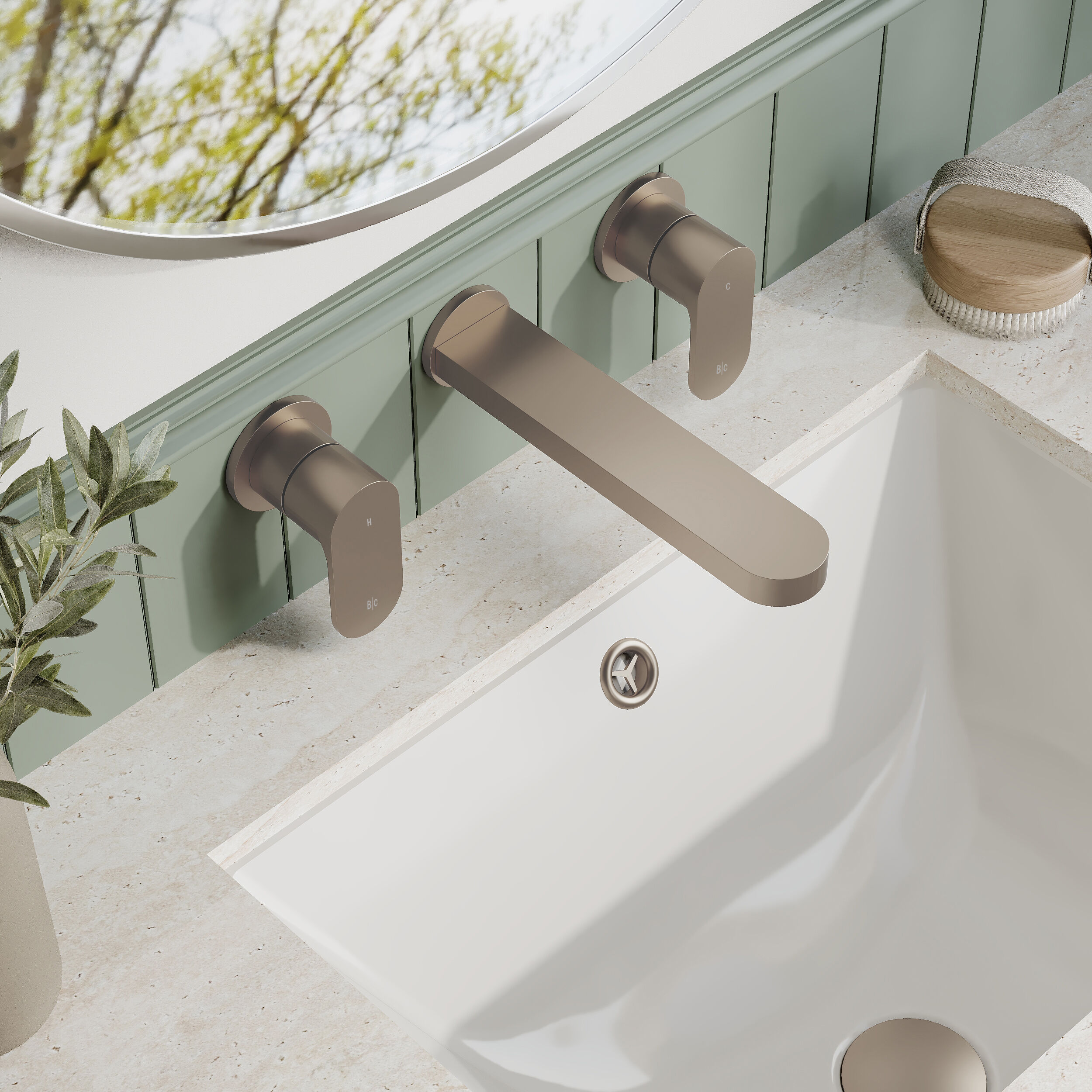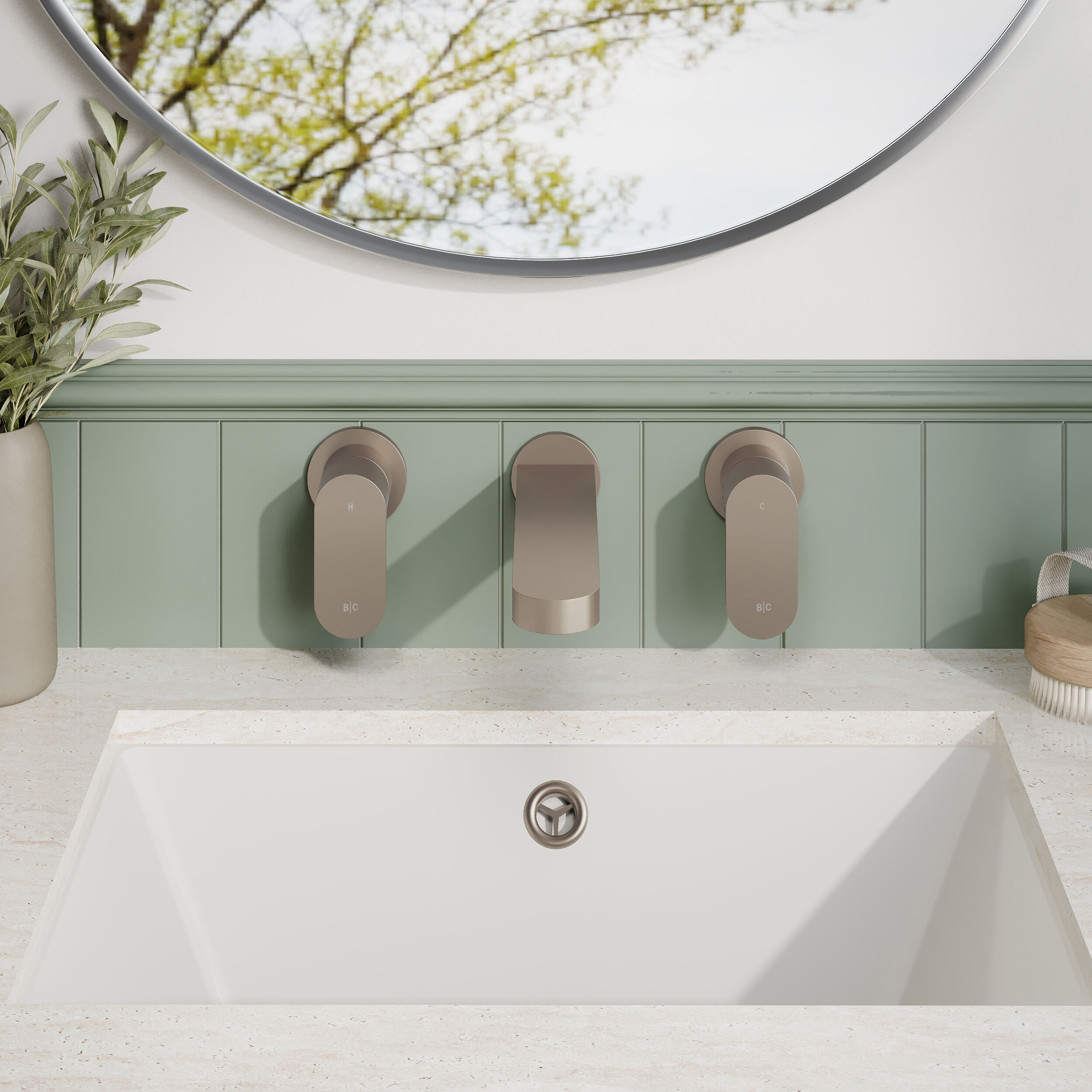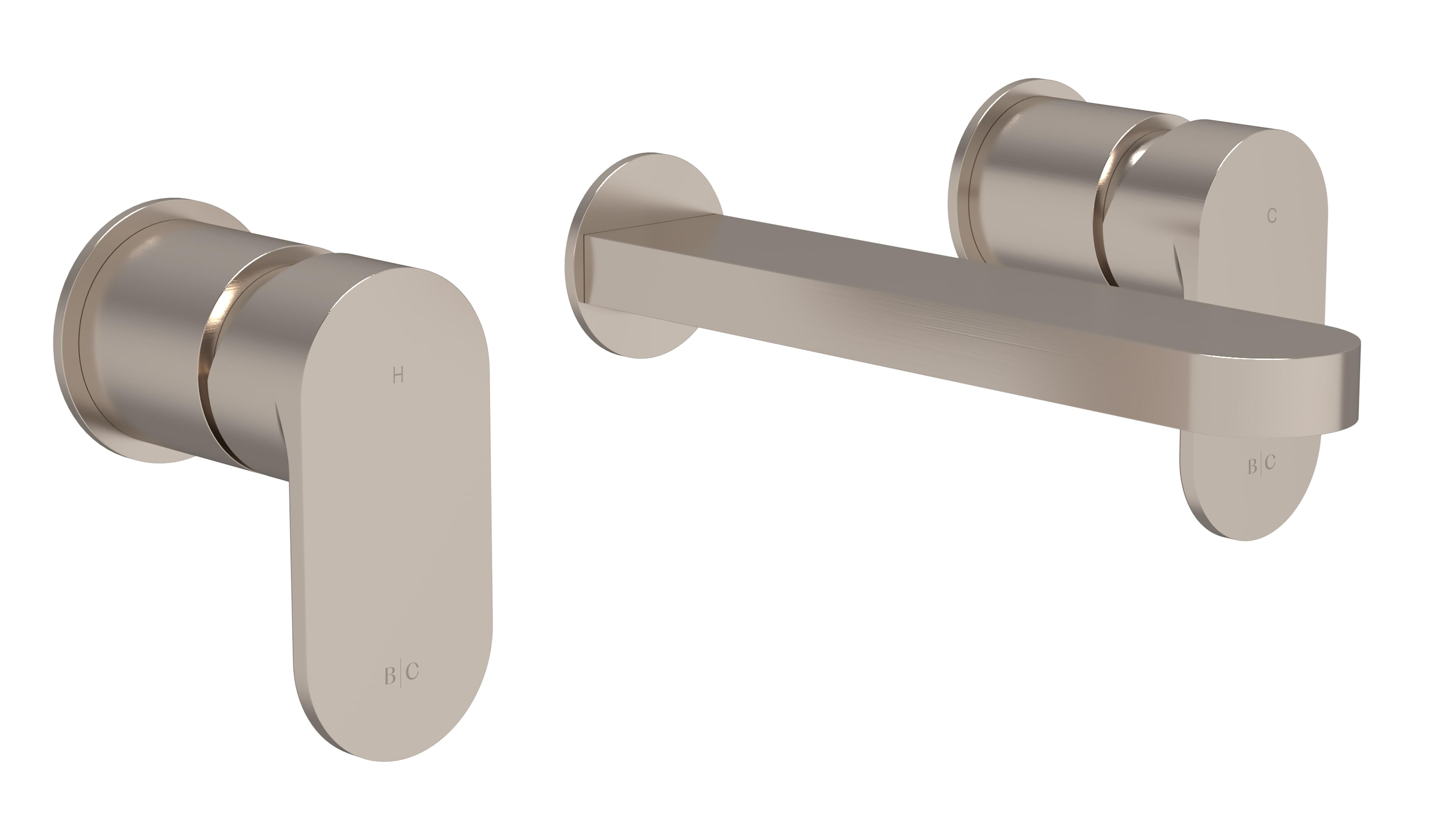 BC Designs Chelmsford Wall Mounted 3 Tap Hole Basin Mixer - Brushed Nickel