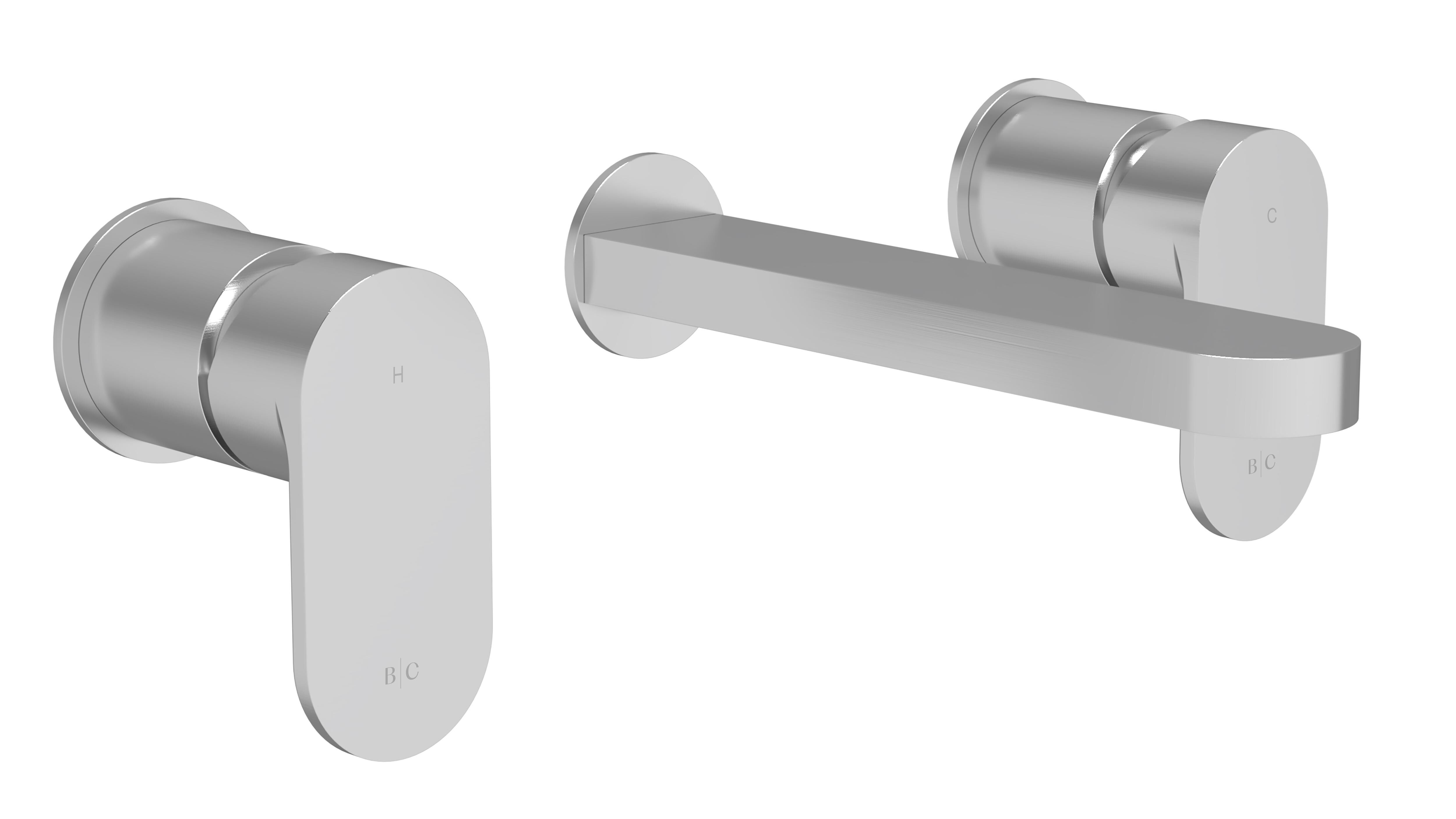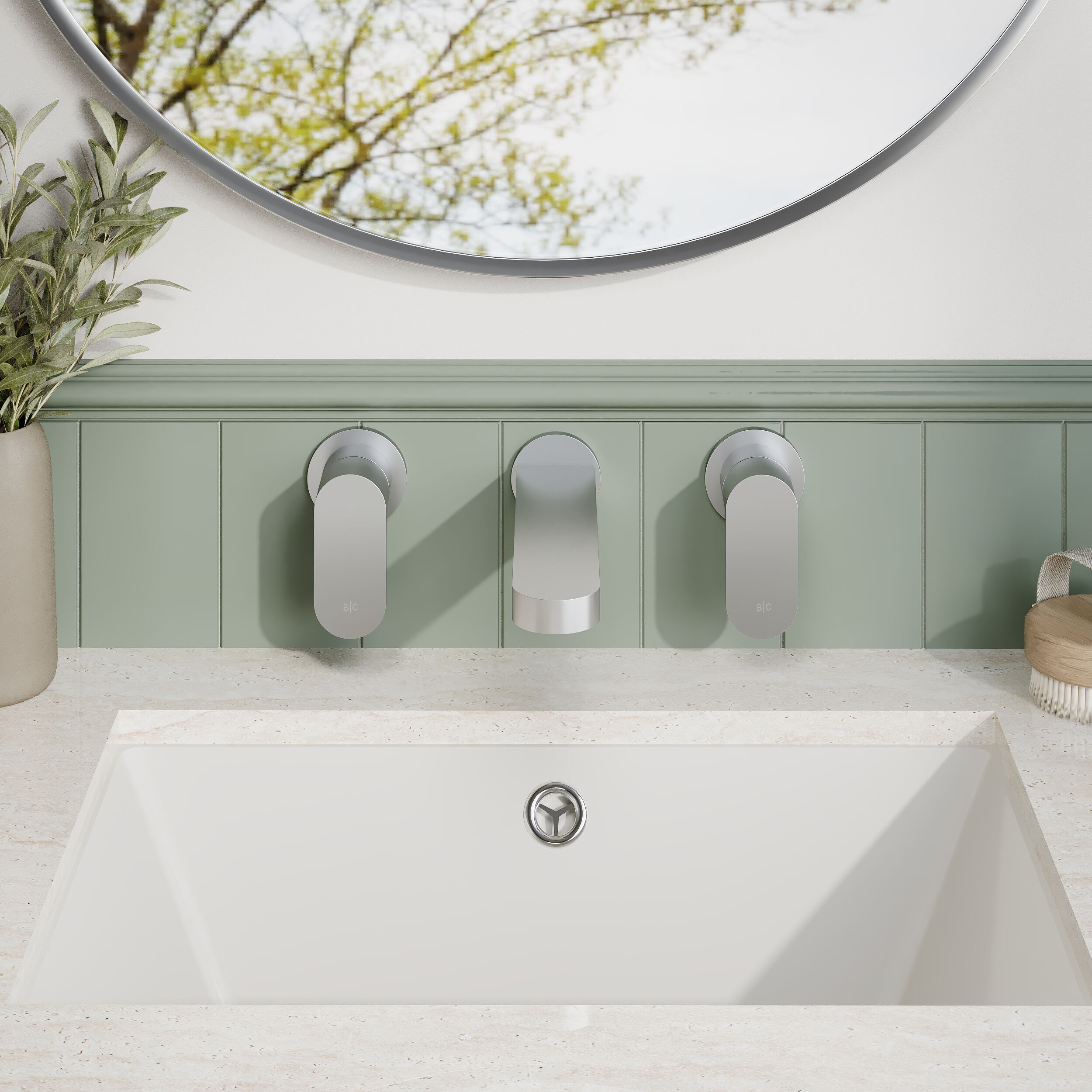 BC Designs Chelmsford Wall Mounted 3 Tap Hole Basin Mixer - Brushed Chrome
