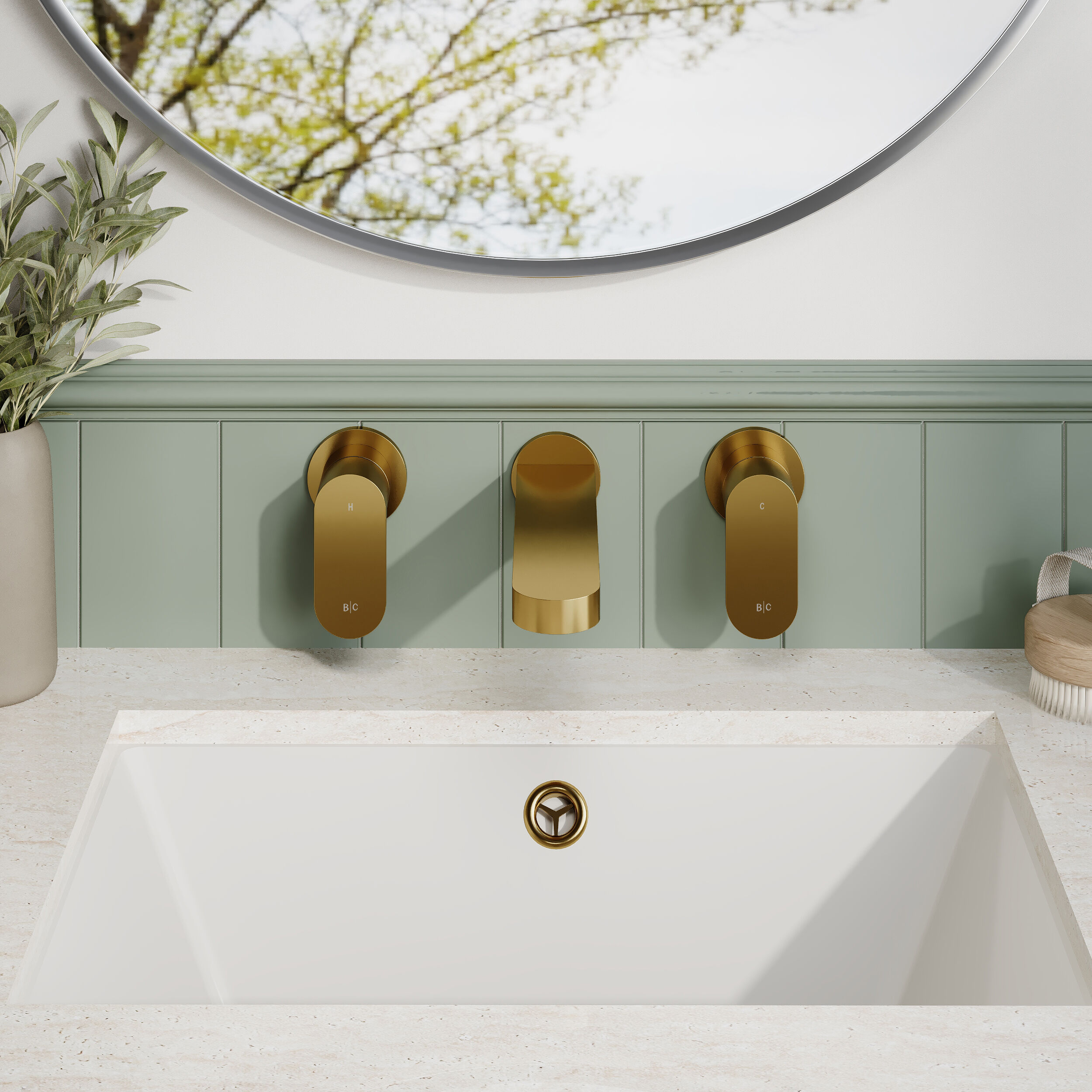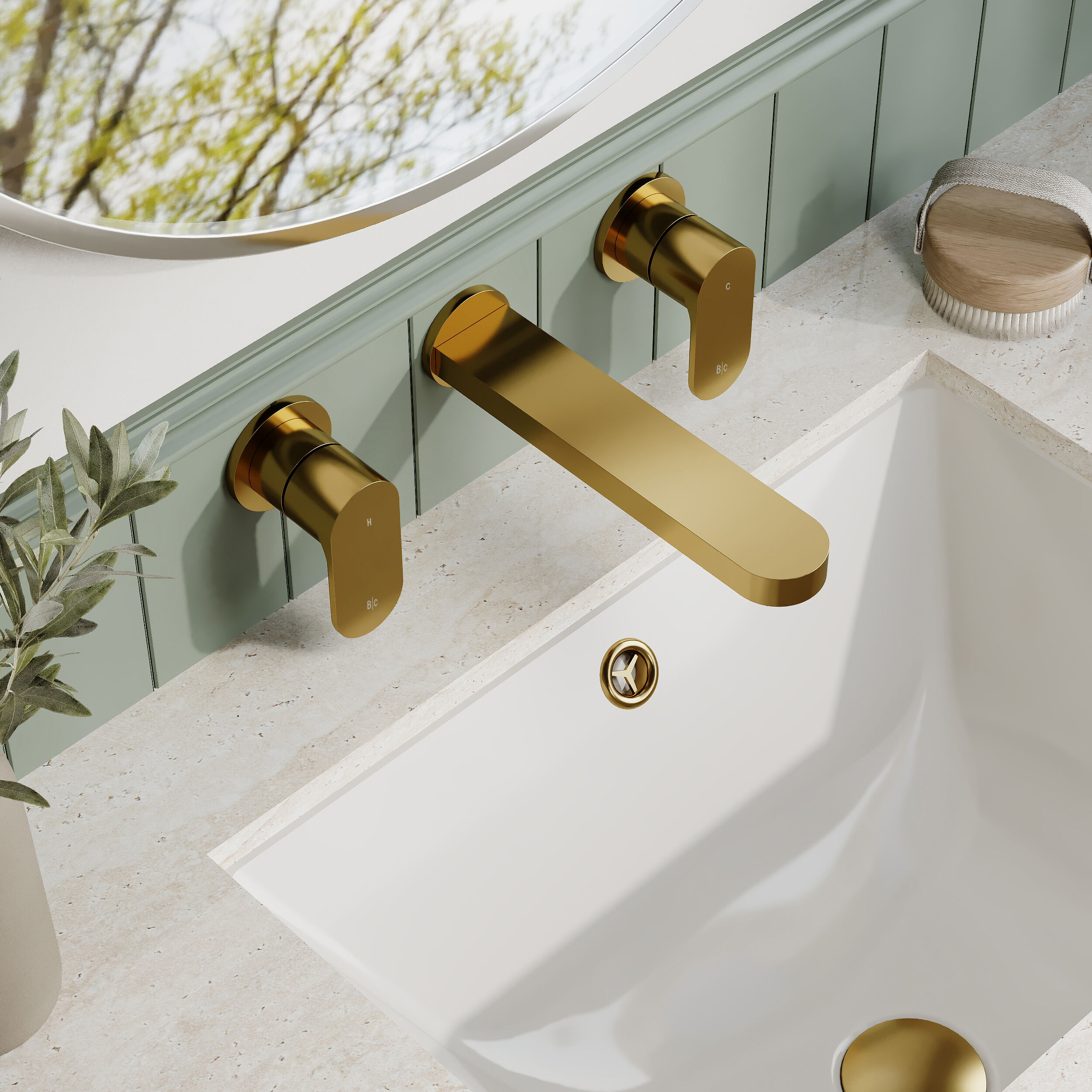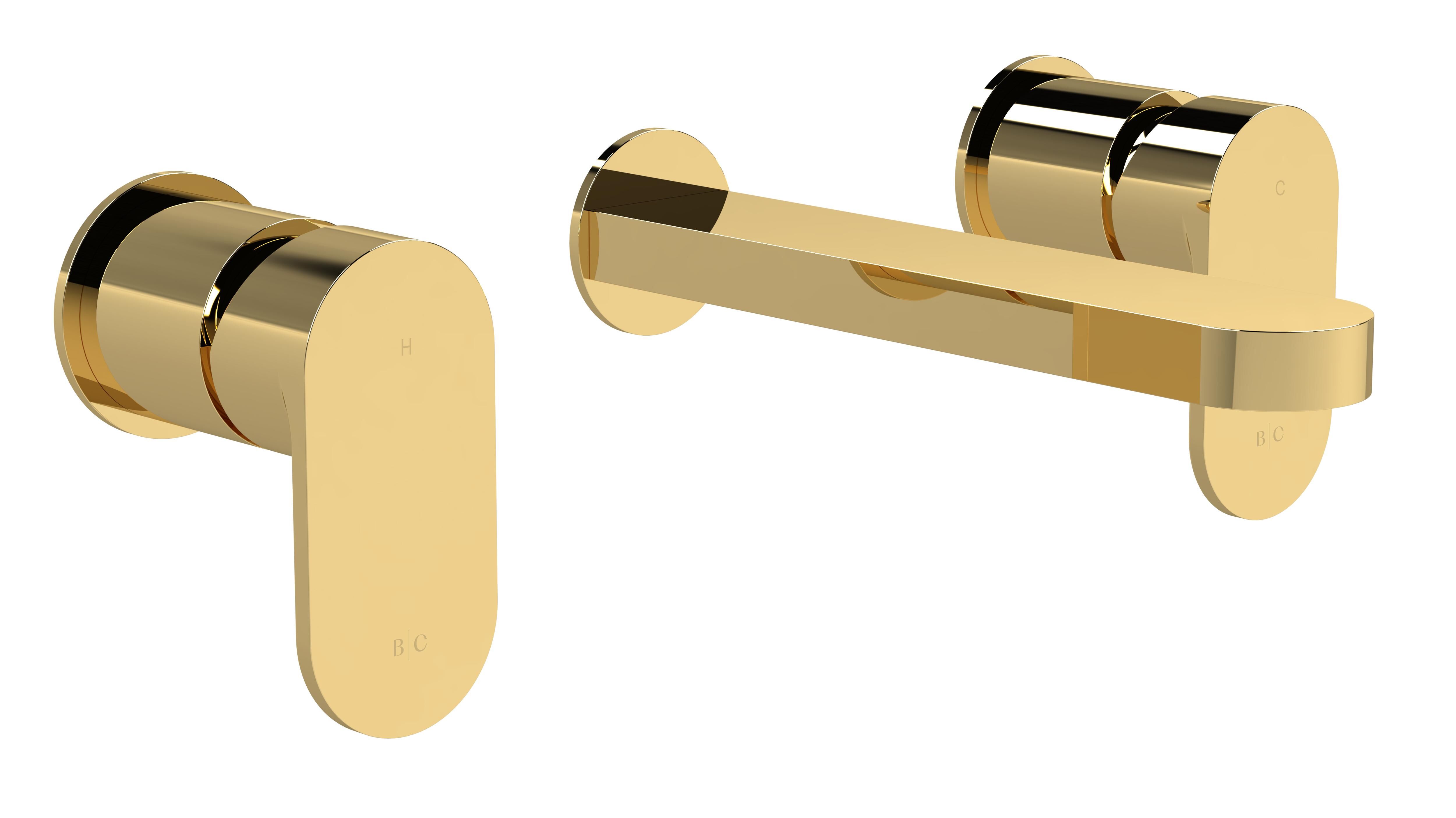 BC Designs Chelmsford Wall Mounted 3 Tap Hole Basin Mixer - Gold