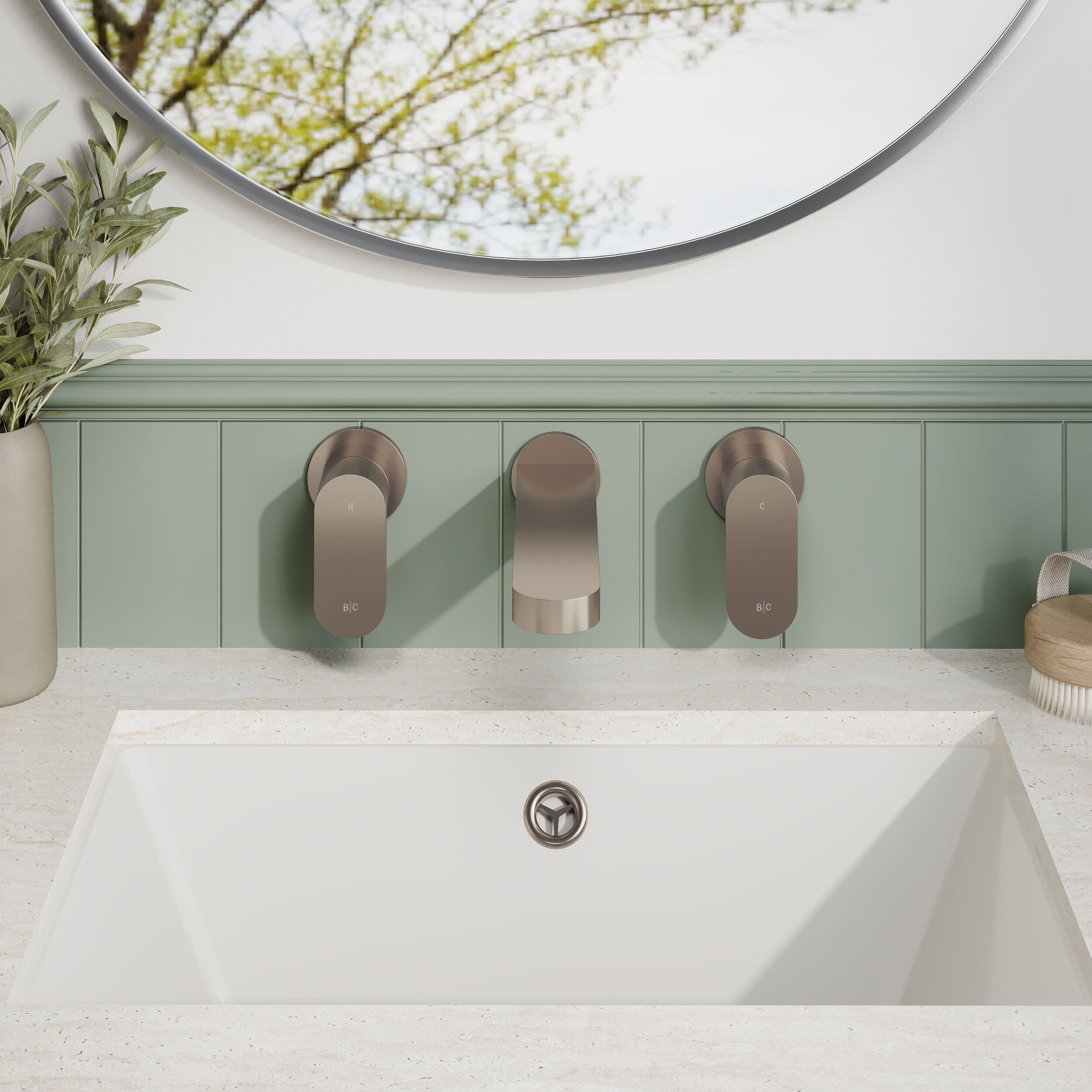 BC Designs Chelmsford Wall Mounted 3 Tap Hole Basin Mixer - Nickel