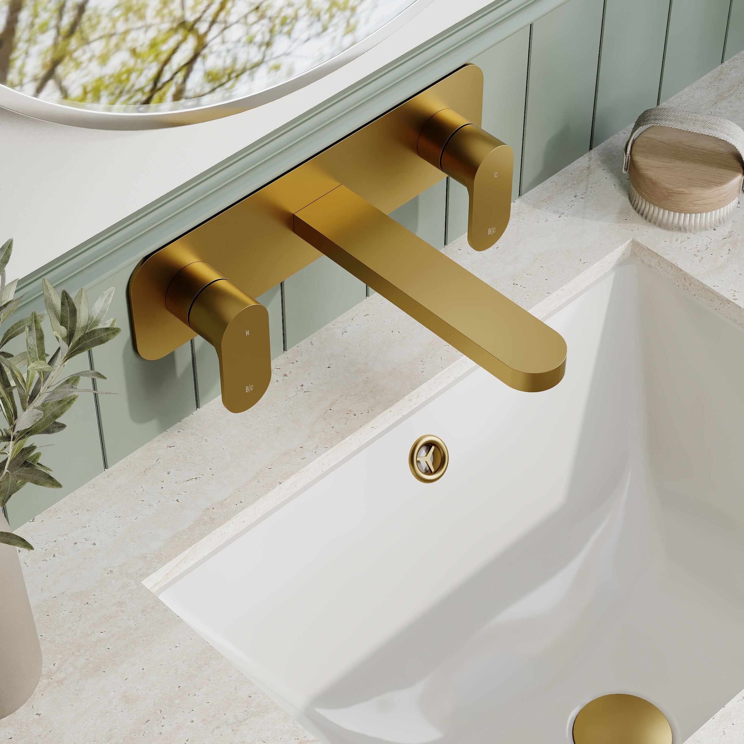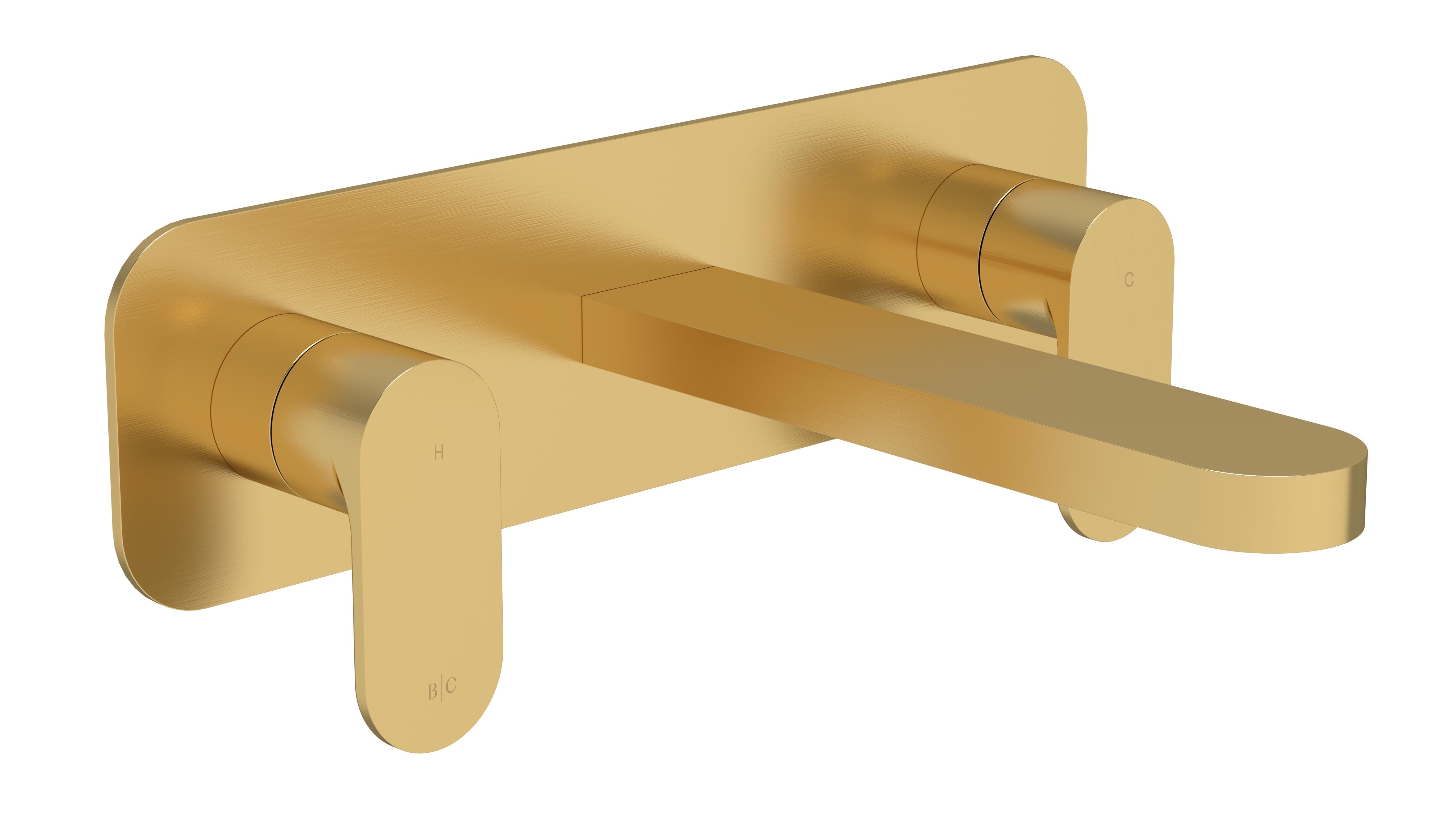 BC Designs Chelmsford Wall Mounted 3 Tap Hole Basin Mixer With Plate - Brushed Gold