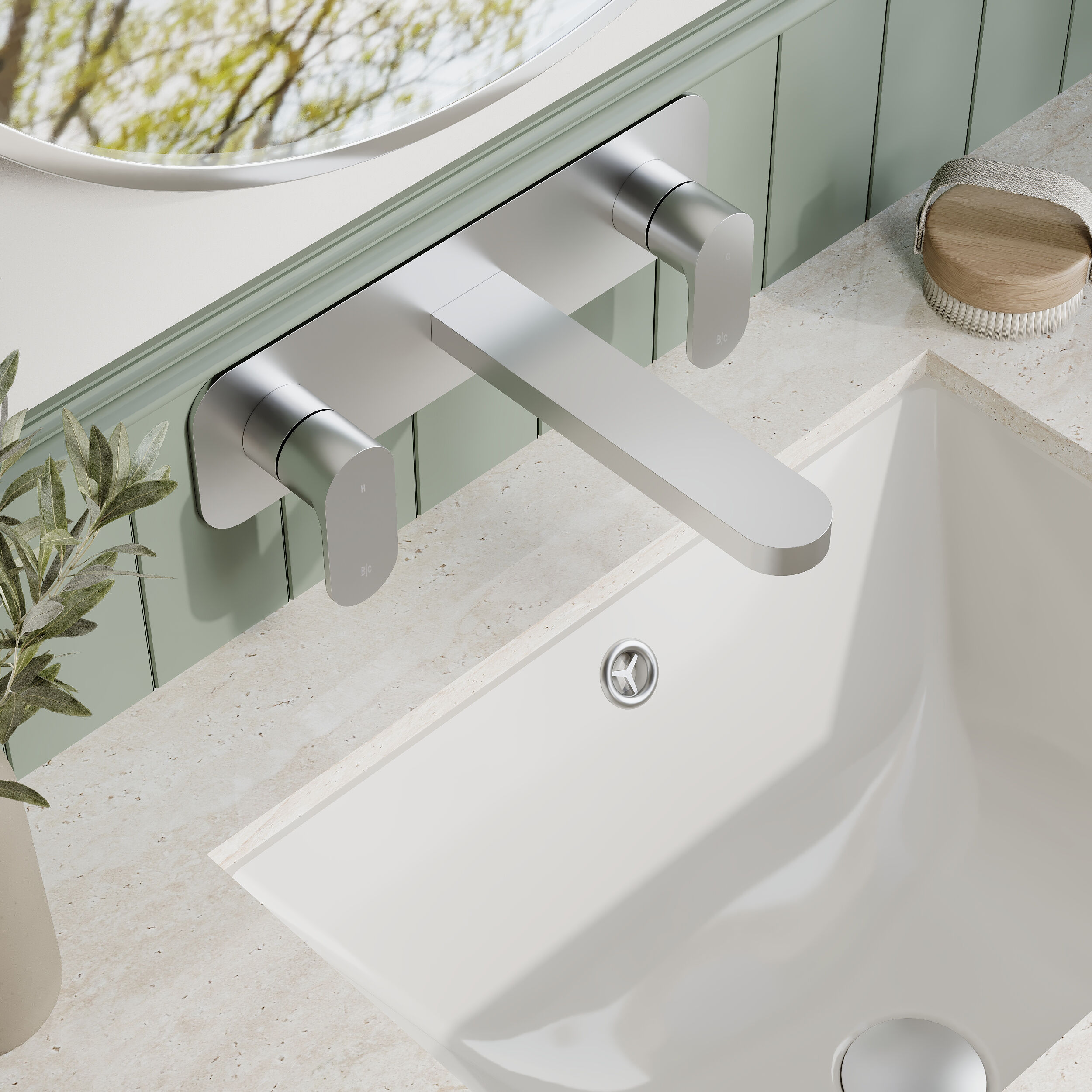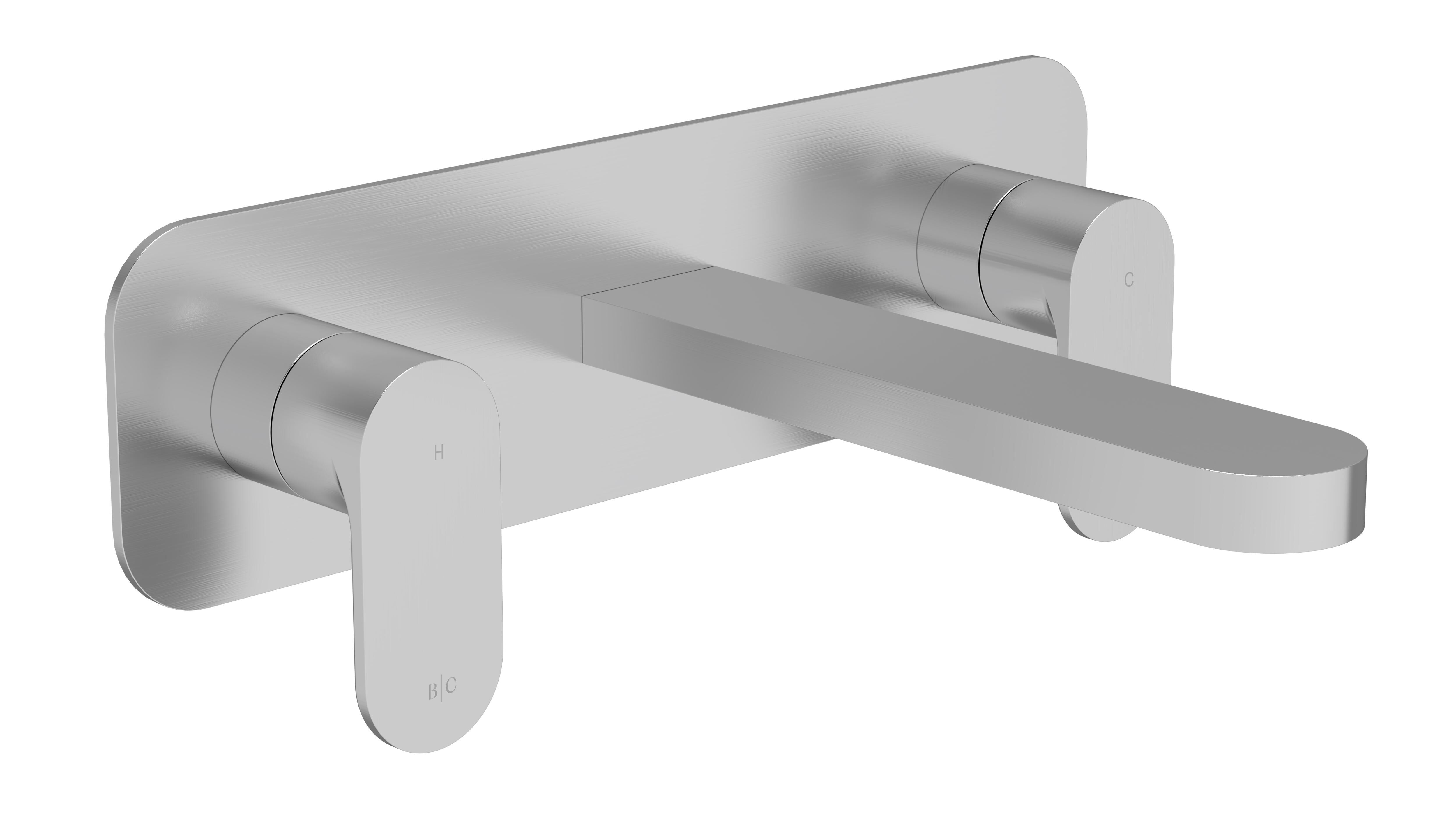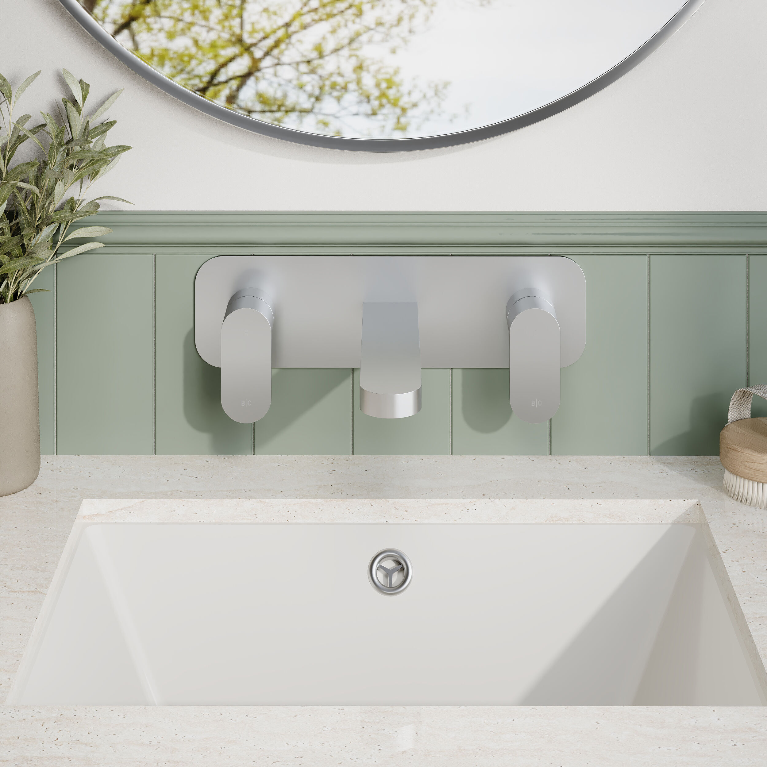 BC Designs Chelmsford Wall Mounted 3 Tap Hole Basin Mixer With Plate - Brushed Chrome