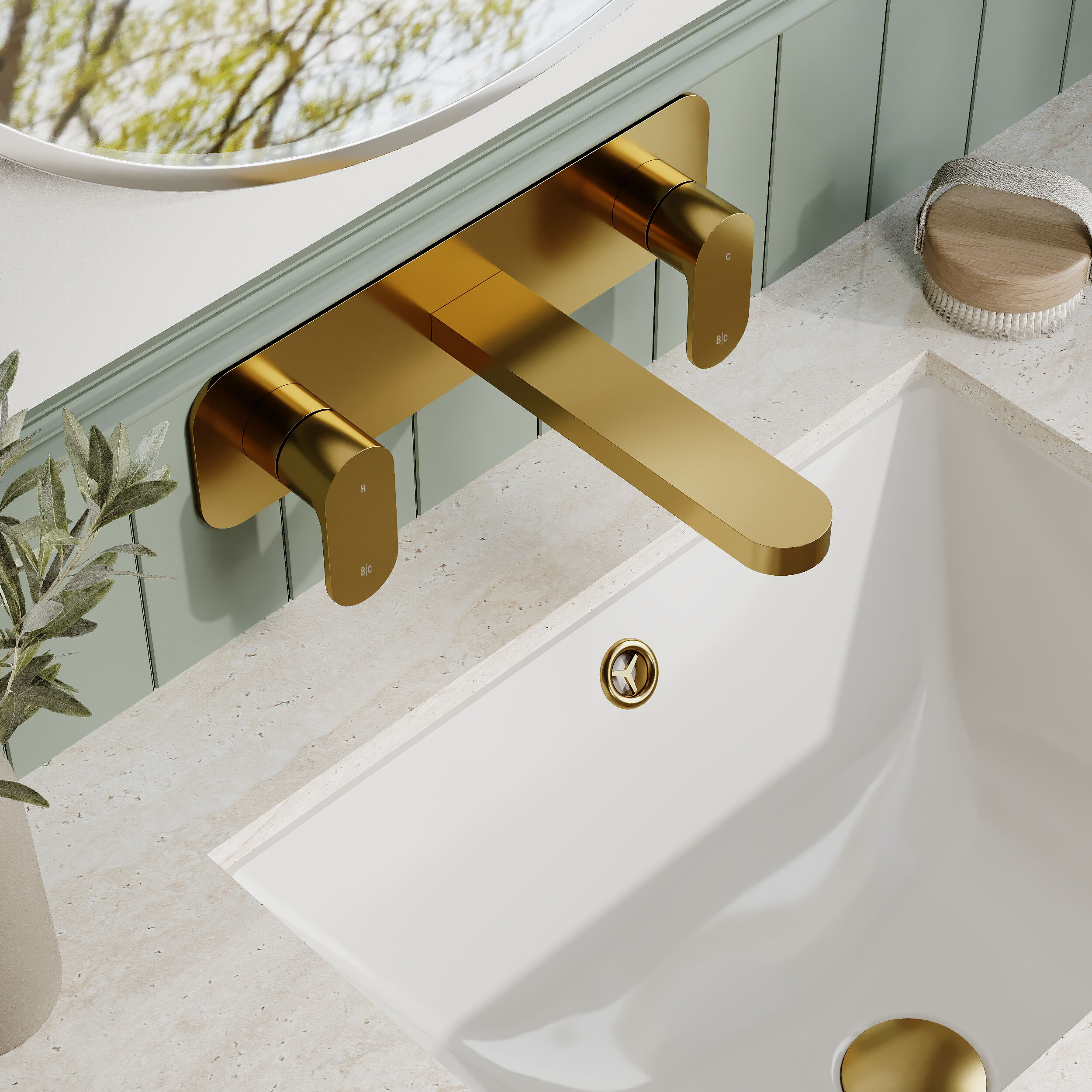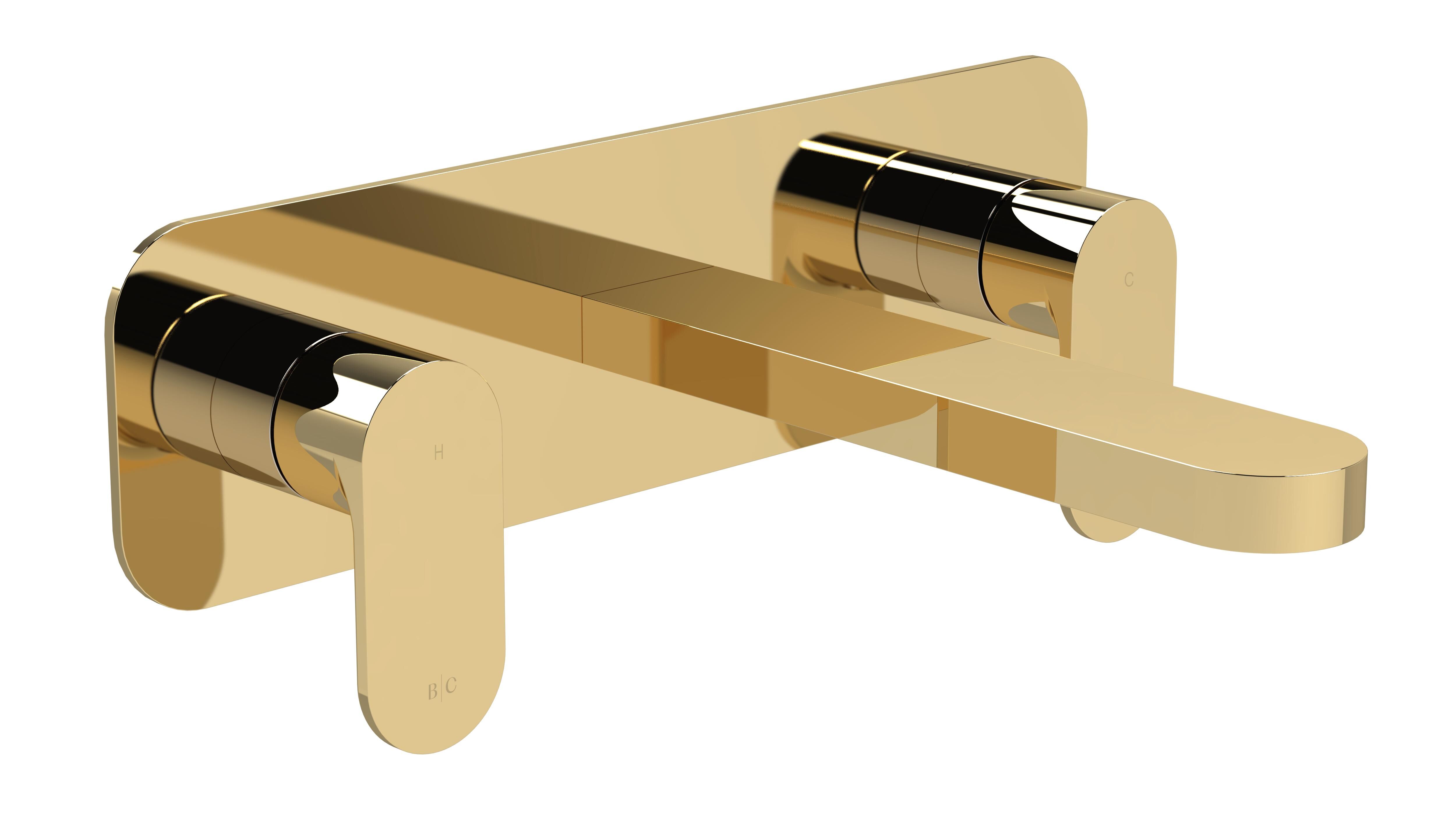 BC Designs Chelmsford Wall Mounted 3 Tap Hole Basin Mixer With Plate - Gold