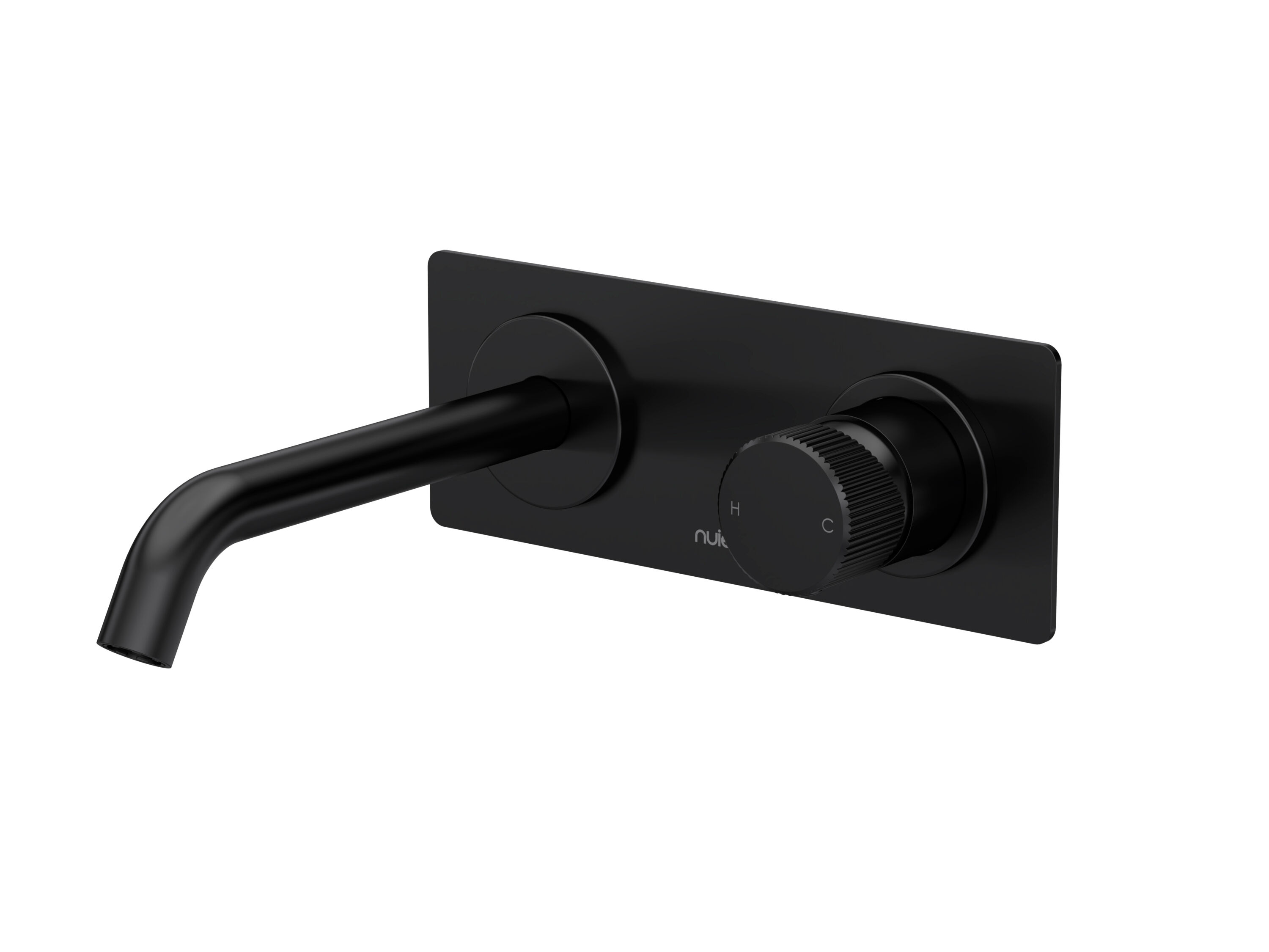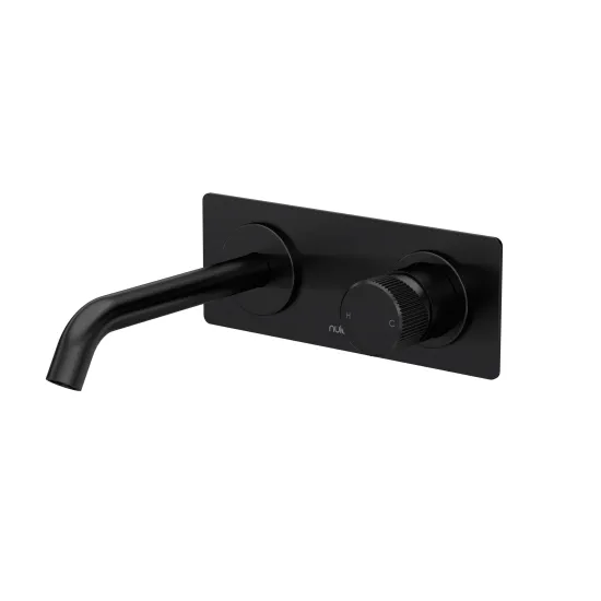 nuie Lux Esker 2 Tap Hole Wall Mounted Basin Mixer With Plate - Matt Black