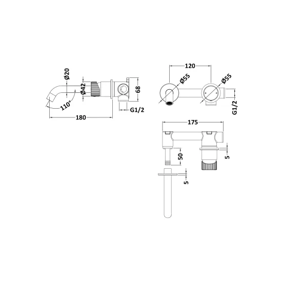 Windon Wall Mounted 2 Tap Hole Basin Mixer