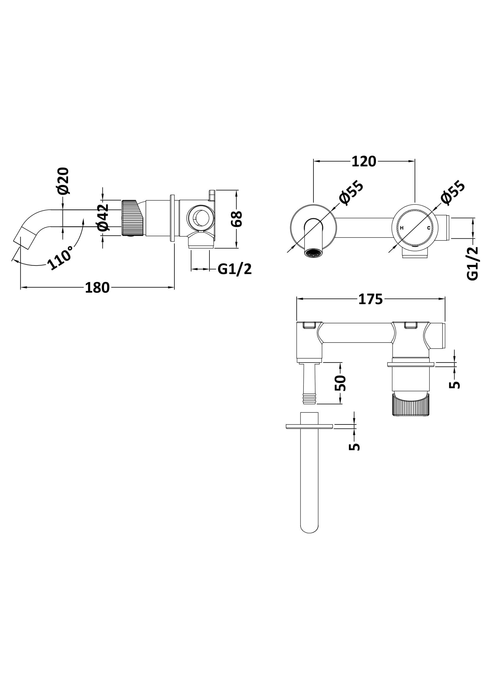 Windon Wall Mounted 2 Tap Hole Basin Mixer