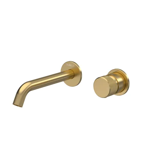 nuie Lux Esker 2 Tap Hole Wall Mounted Basin Mixer Without Plate - Brushed Brass