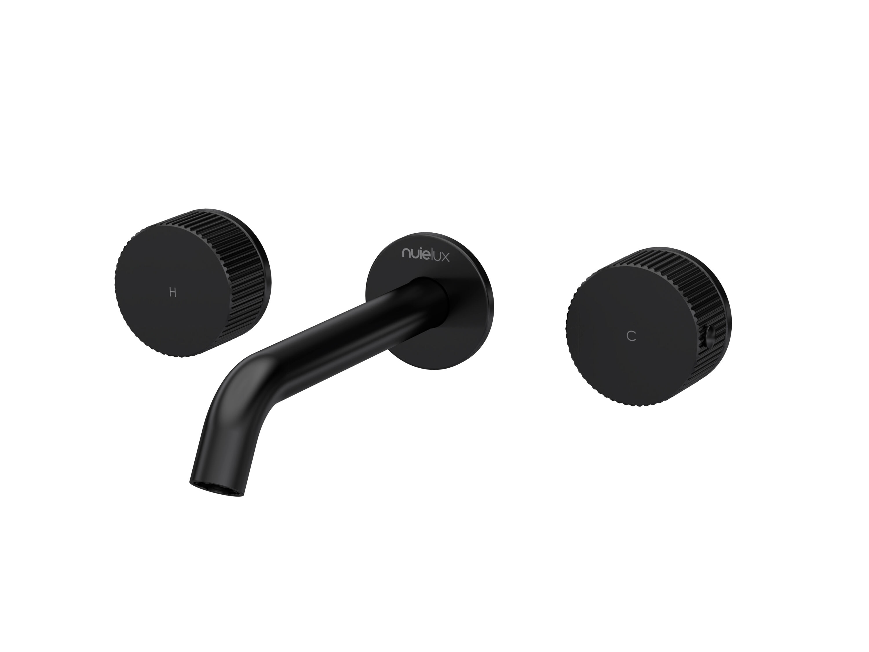 nuie Lux Esker 3 Tap Hole Wall Mount Basin Bath Mixer Without Plate - Matt Black