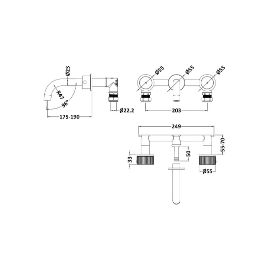 Windon Wall Mounted 3 Tap Hole Basin Mixer