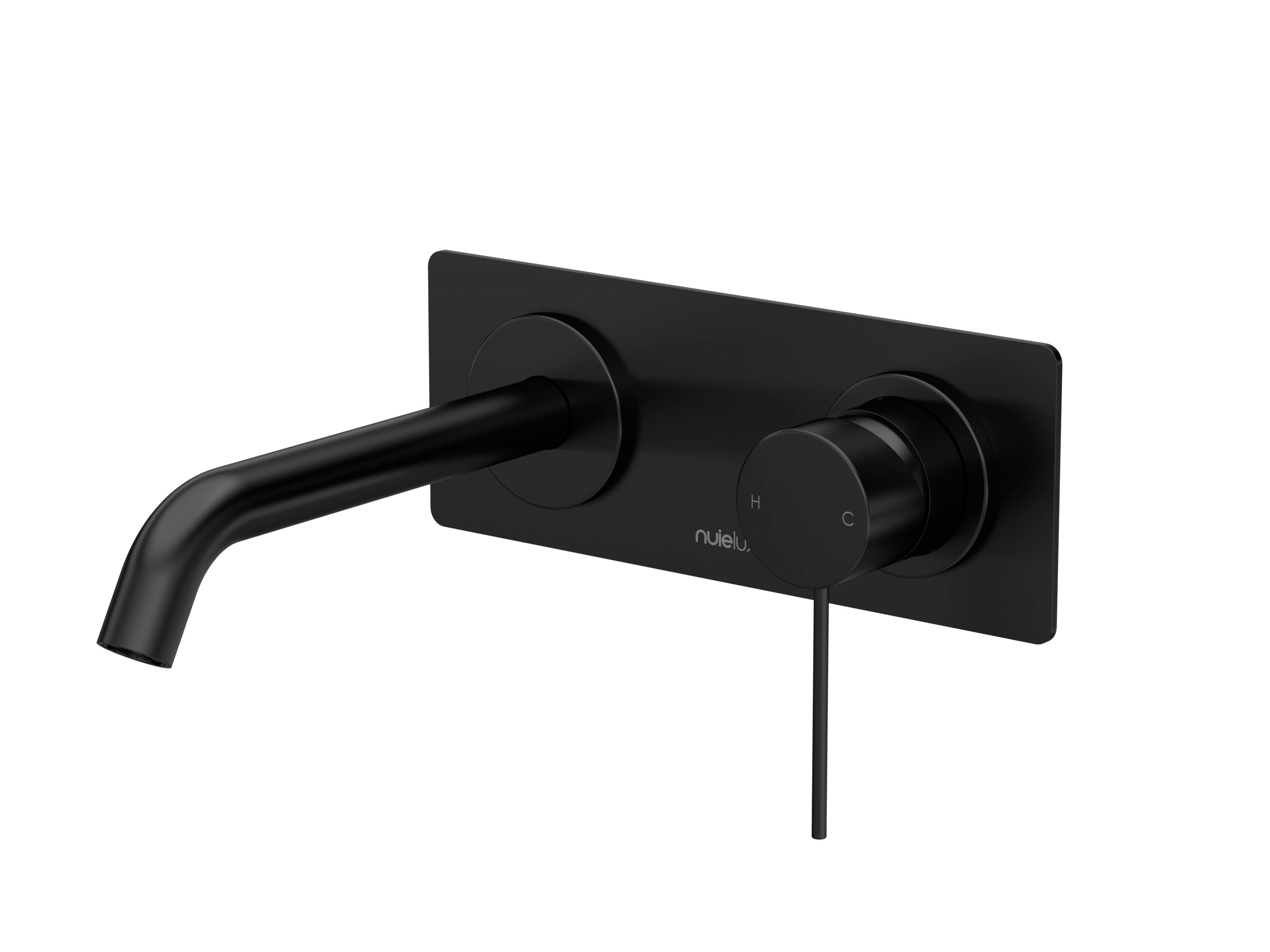 nuie Lux Riven 2 Tap Hole Wall Mounted Basin Mixer With Plate - Matt Black