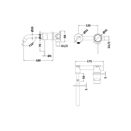 Windon Wall Mounted 2 Tap Hole Basin Mixer