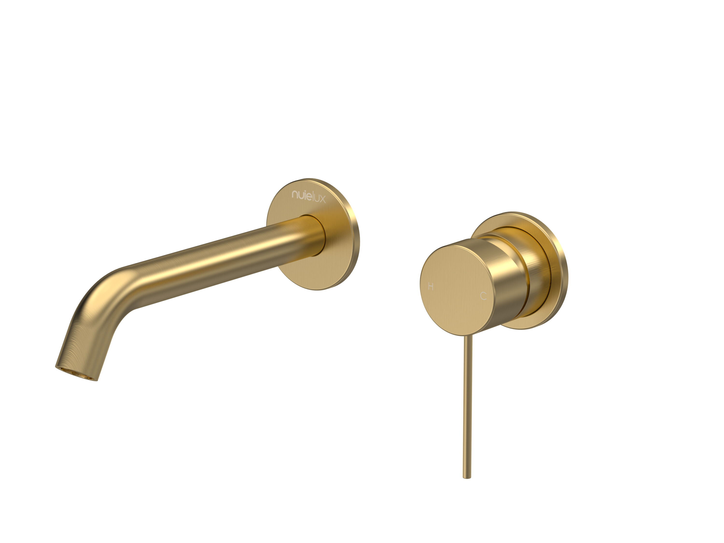nuie Lux Riven 2 Tap Hole Wall Mounted Basin Mixer Without Plate - Brushed Brass
