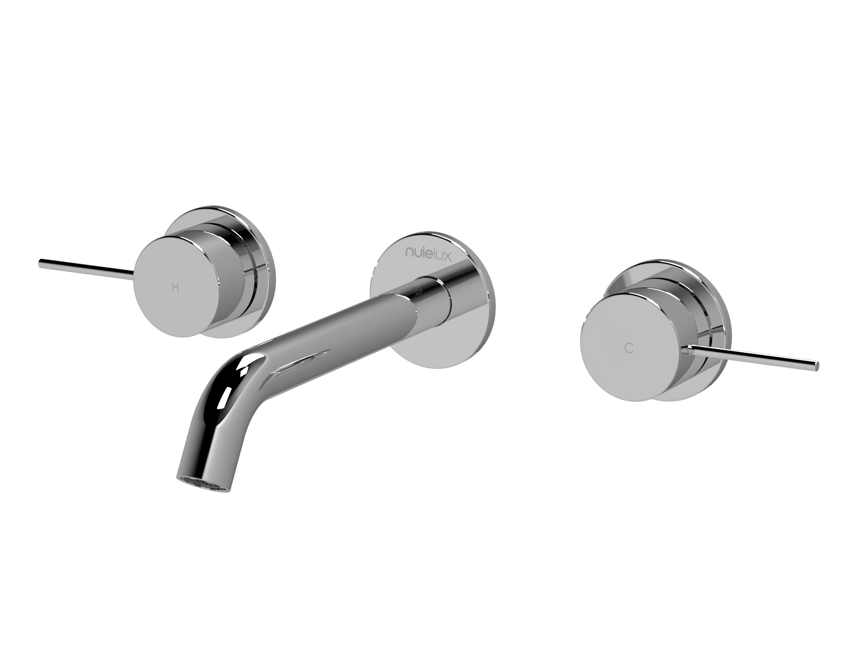 nuie Lux Riven 3 Tap Hole Wall Mount Basin Bath Mixer Without Plate - Chrome