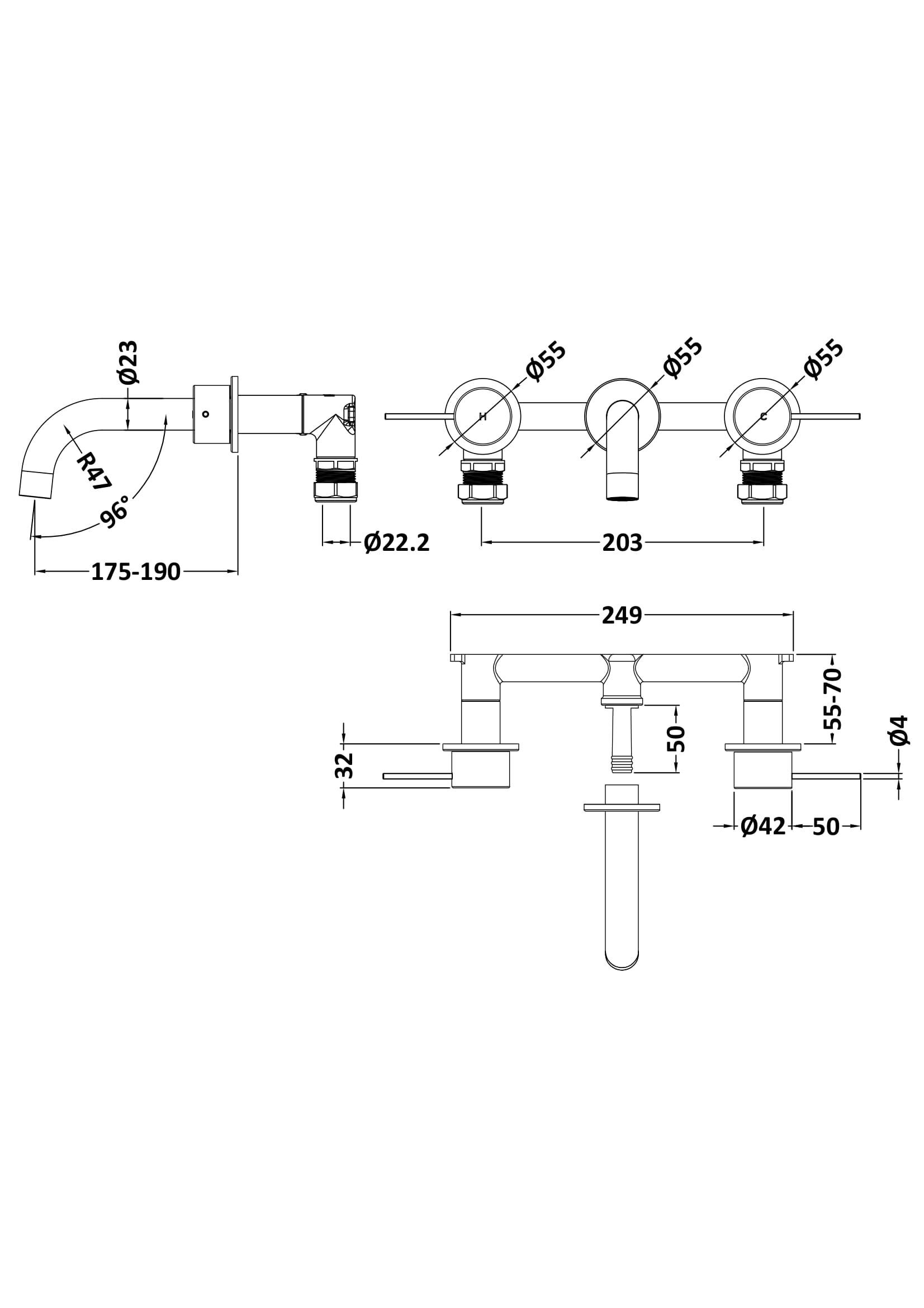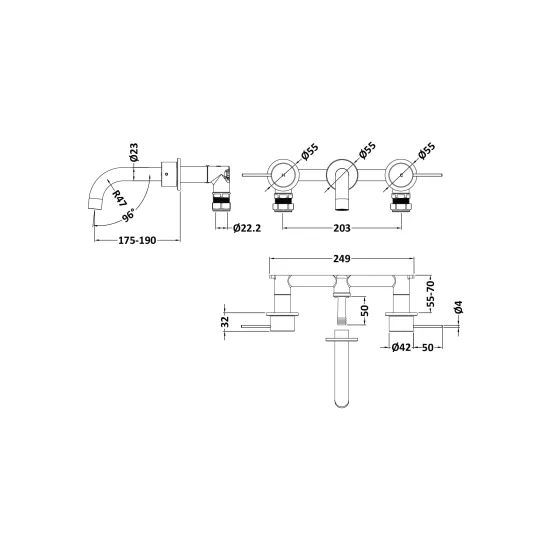 Windon Wall Mounted 3 Tap Hole Basin Mixer
