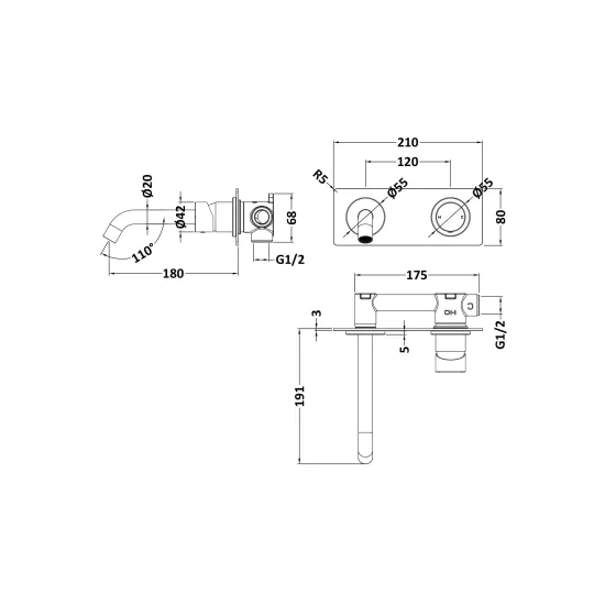 Windon Wall Mounted 3 Tap Hole Basin Mixer