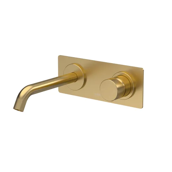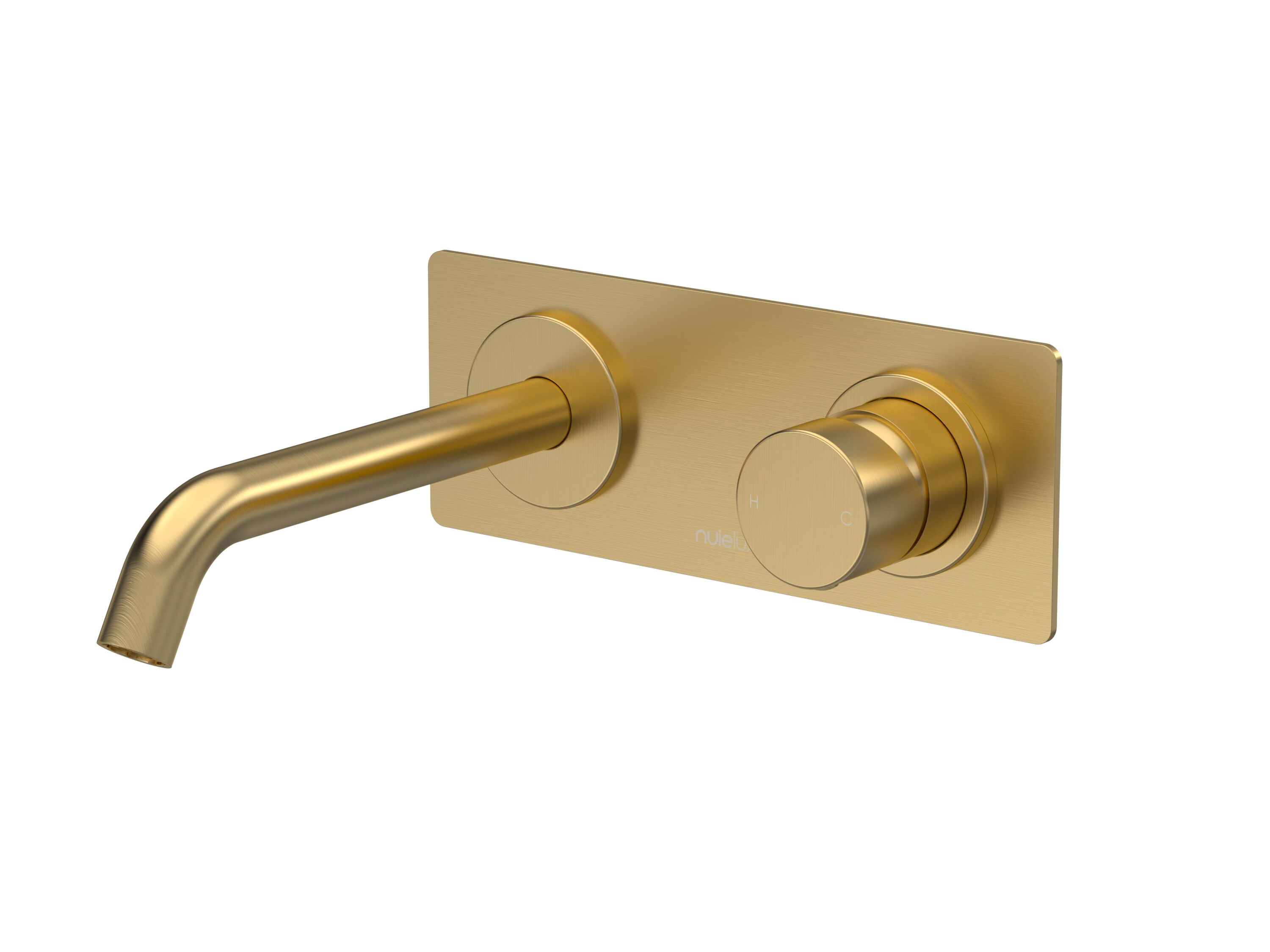 nuie Lux Steeple 2 Tap Hole Wall Mounted Basin Mixer With Plate - Brushed Brass