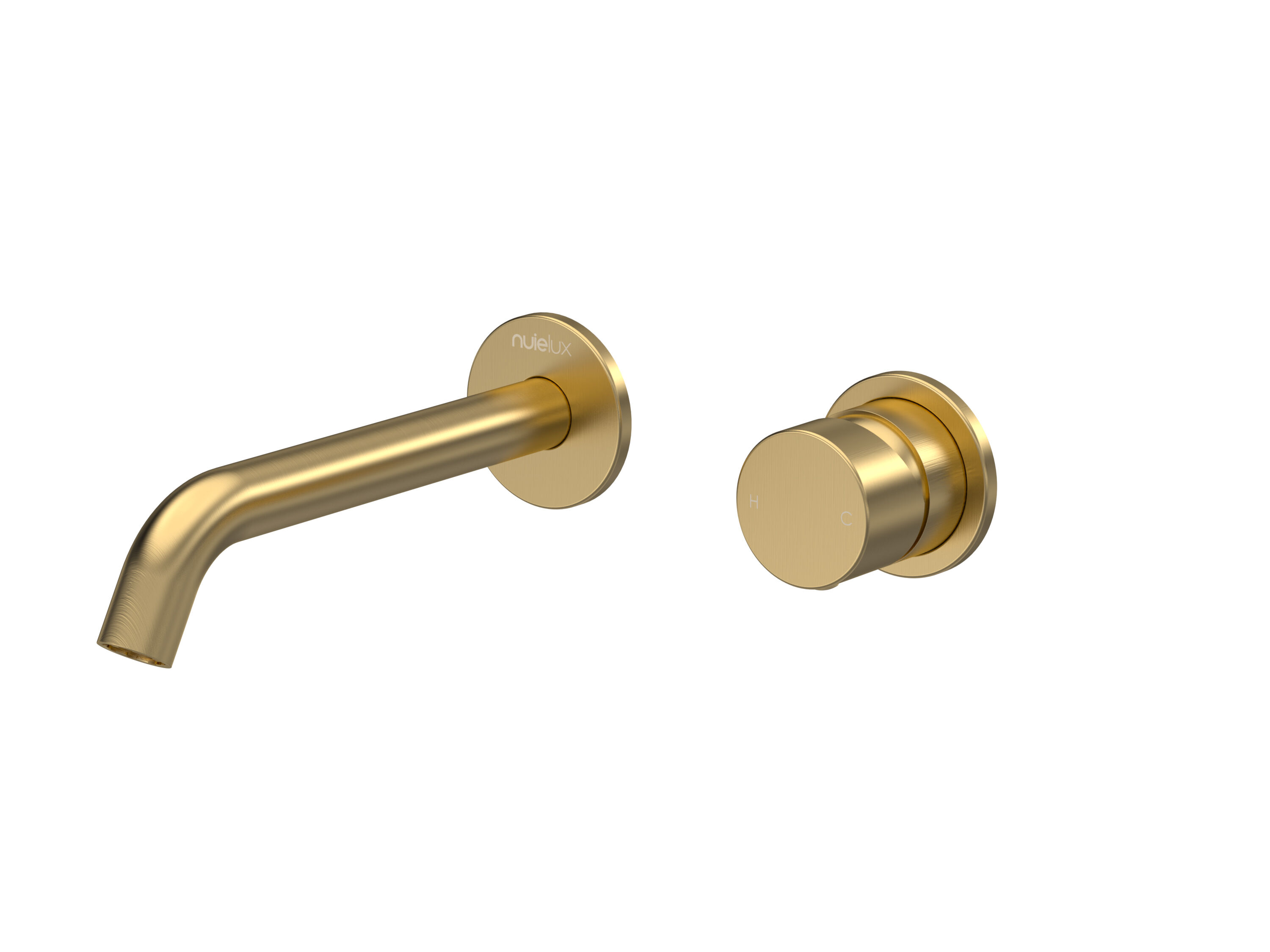 nuie Lux Steeple 2 Tap Hole Wall Mounted Basin Mixer Without Plate - Brushed Brass