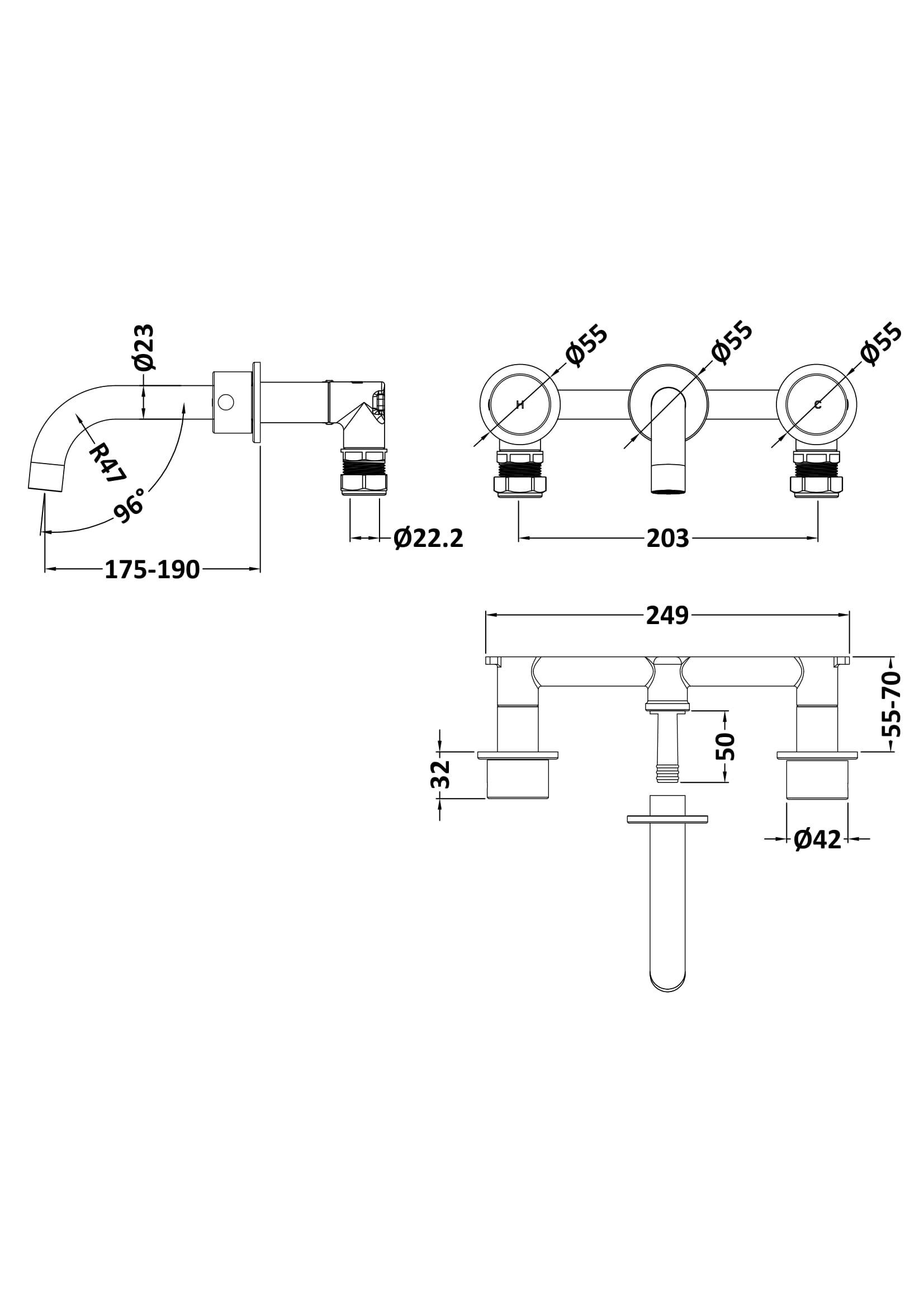 Windon Wall Mounted 3 Tap Hole Basin Mixer