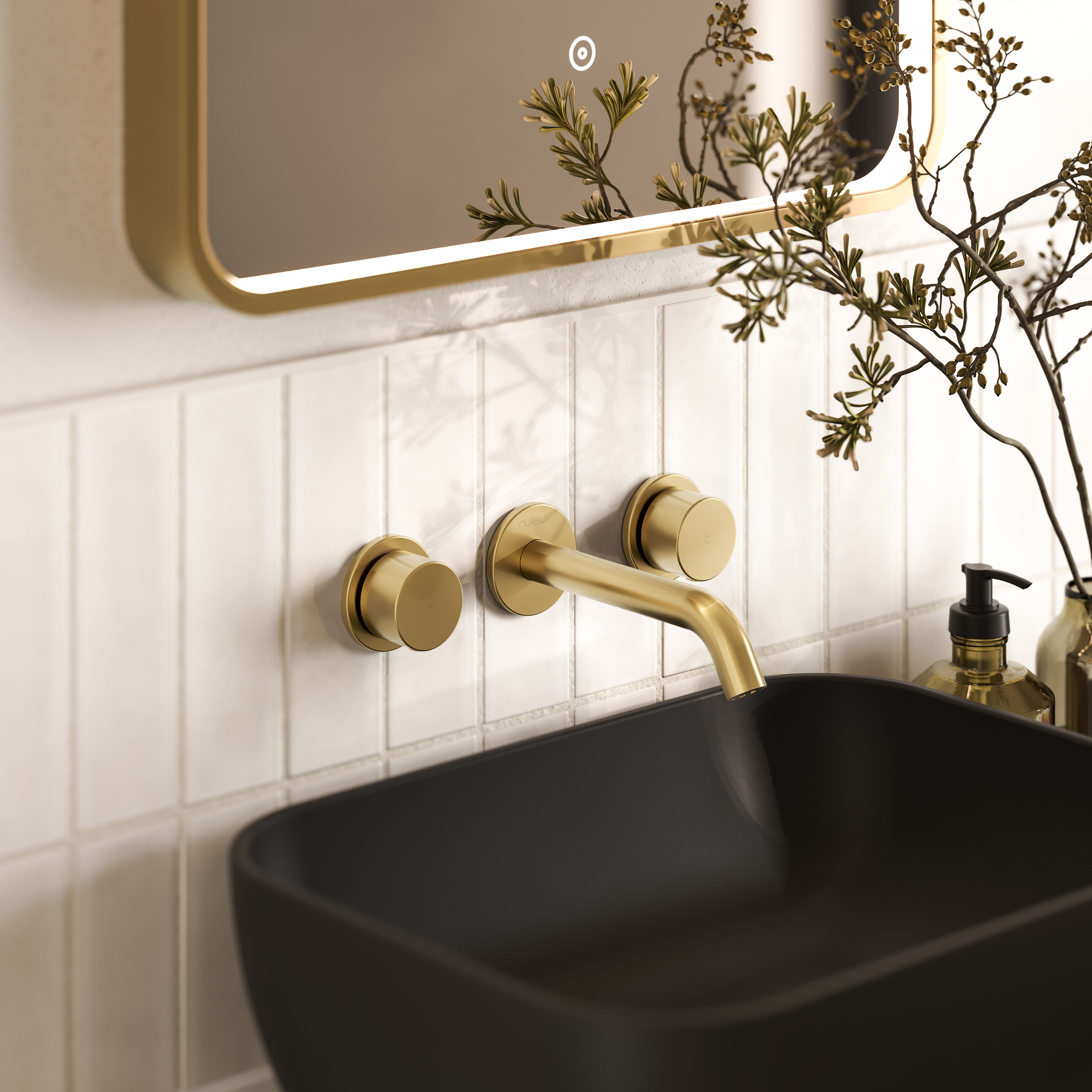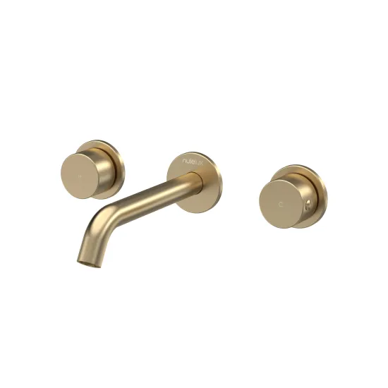 nuie Lux Steeple 3 Tap Hole Wall Mount Basin Bath Mixer Without Plate - Brushed Brass