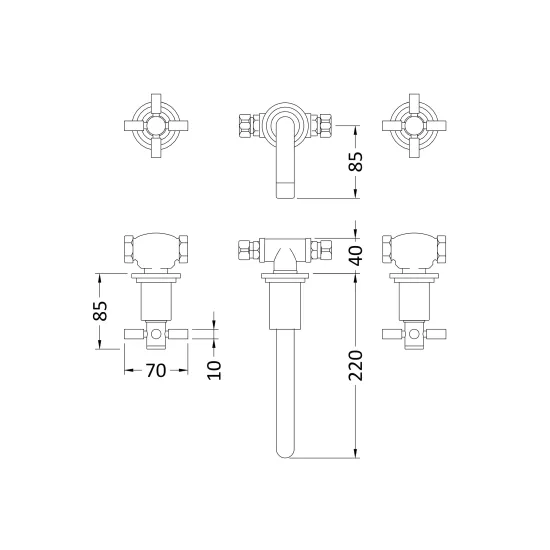 Synergy Traba Crosshead Wall Mounted Basin Mixer - Chrome