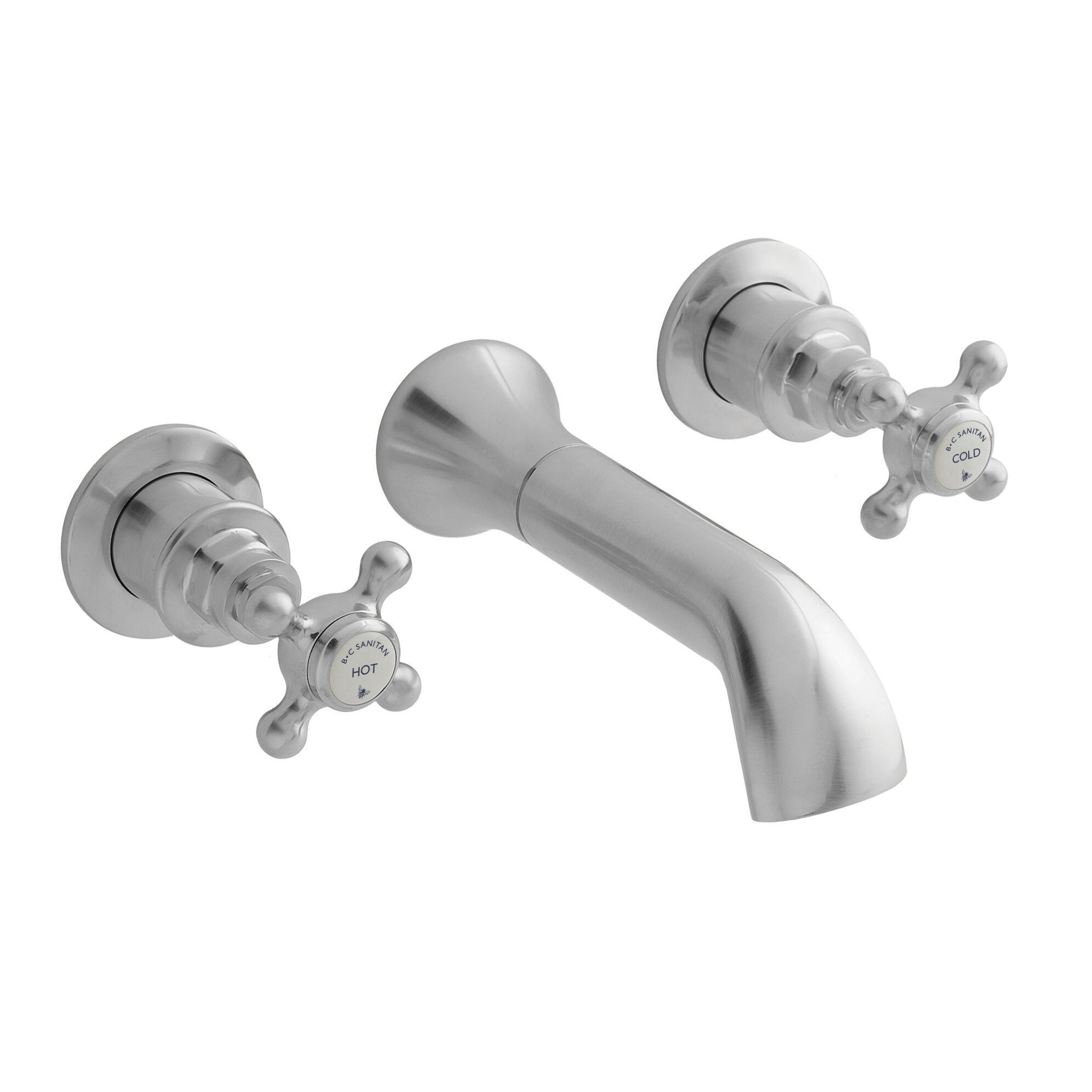 BC Sanitan Victrion Wall Mount Crosshead 3 Tap Hole Basin Filler Tap - Brushed Chrome
