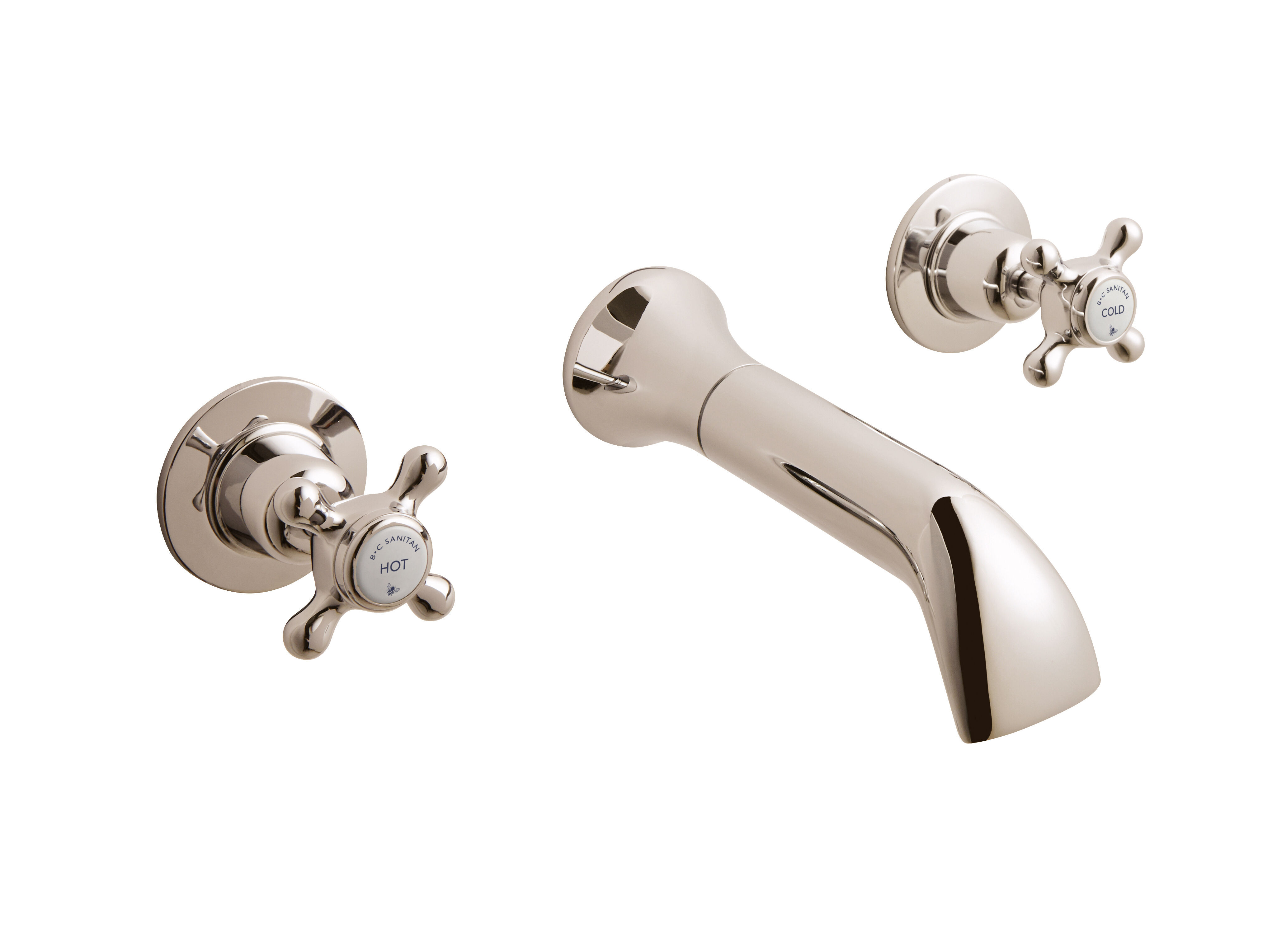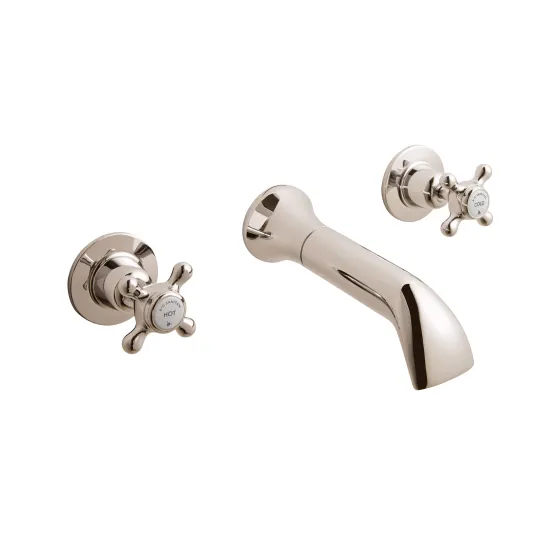 BC Sanitan Victrion Wall Mount Crosshead 3 Tap Hole Basin Filler Tap - Nickel