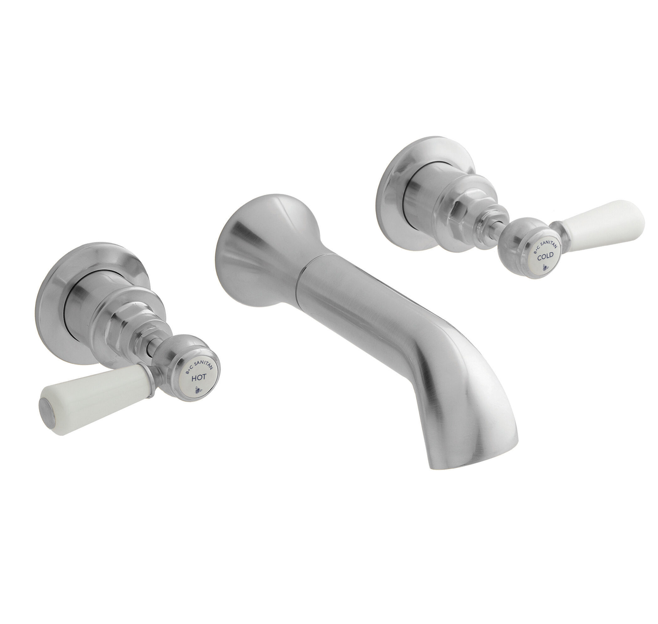 BC Sanitan Victrion Wall Mount Lever 3 Tap Hole Basin Filler Tap - Brushed Chrome