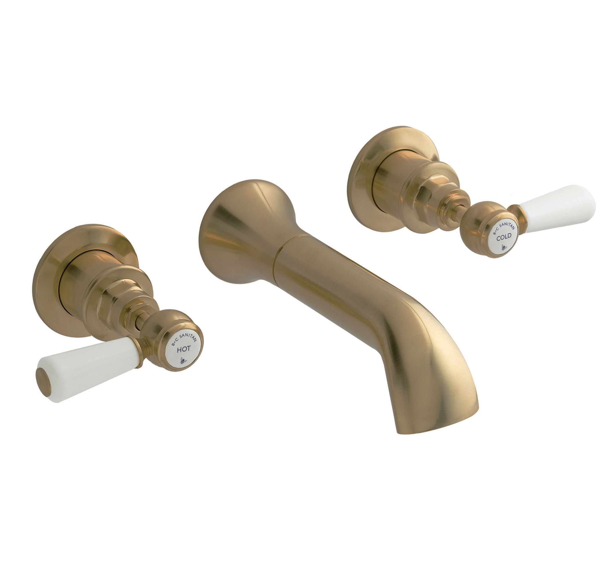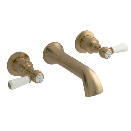 BC Sanitan Victrion Wall Mount Lever 3 Tap Hole Basin Filler Tap - Brushed Brass
