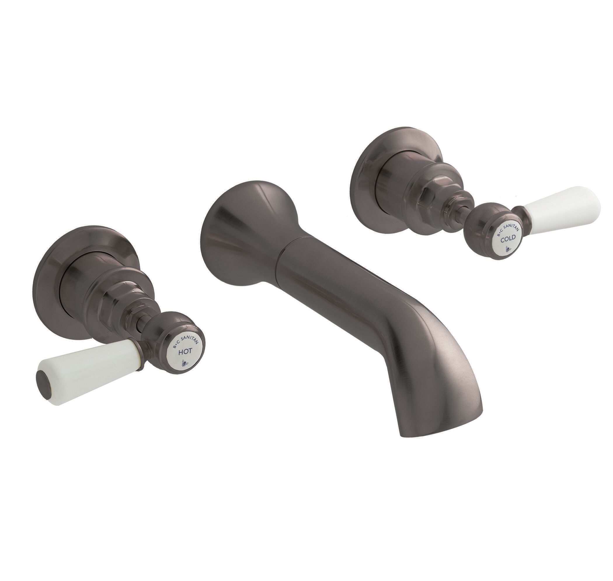 BC Sanitan Victrion Wall Mount Lever 3 Tap Hole Basin Filler Tap - Brushed Pewter
