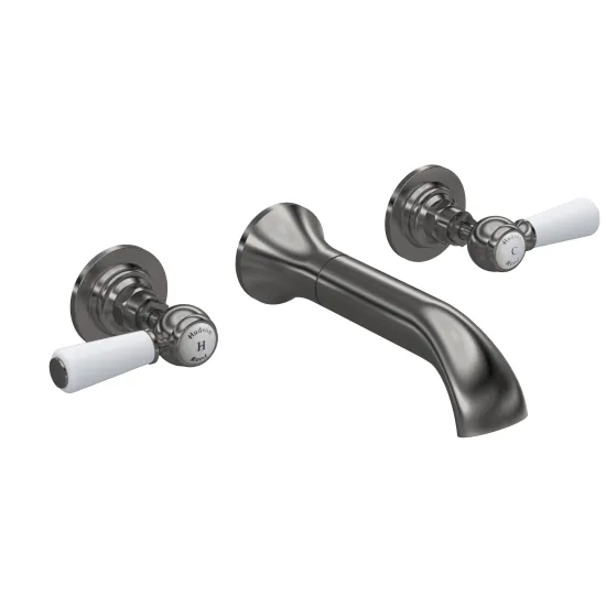 Old London White Topaz With Lever Handle 3 Tap Hole Wall Mounted Basin Mixer - Brushed Pewter