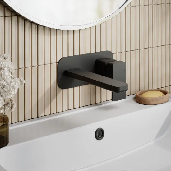 nuie Windon Wall Mounted 2 Tap Hole Basin Mixer With Plate - Matt Black