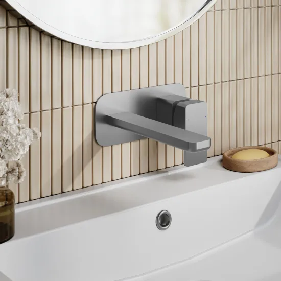 Arvan Wall Mounted 2 Tap Hole Basin Mixer With Plate