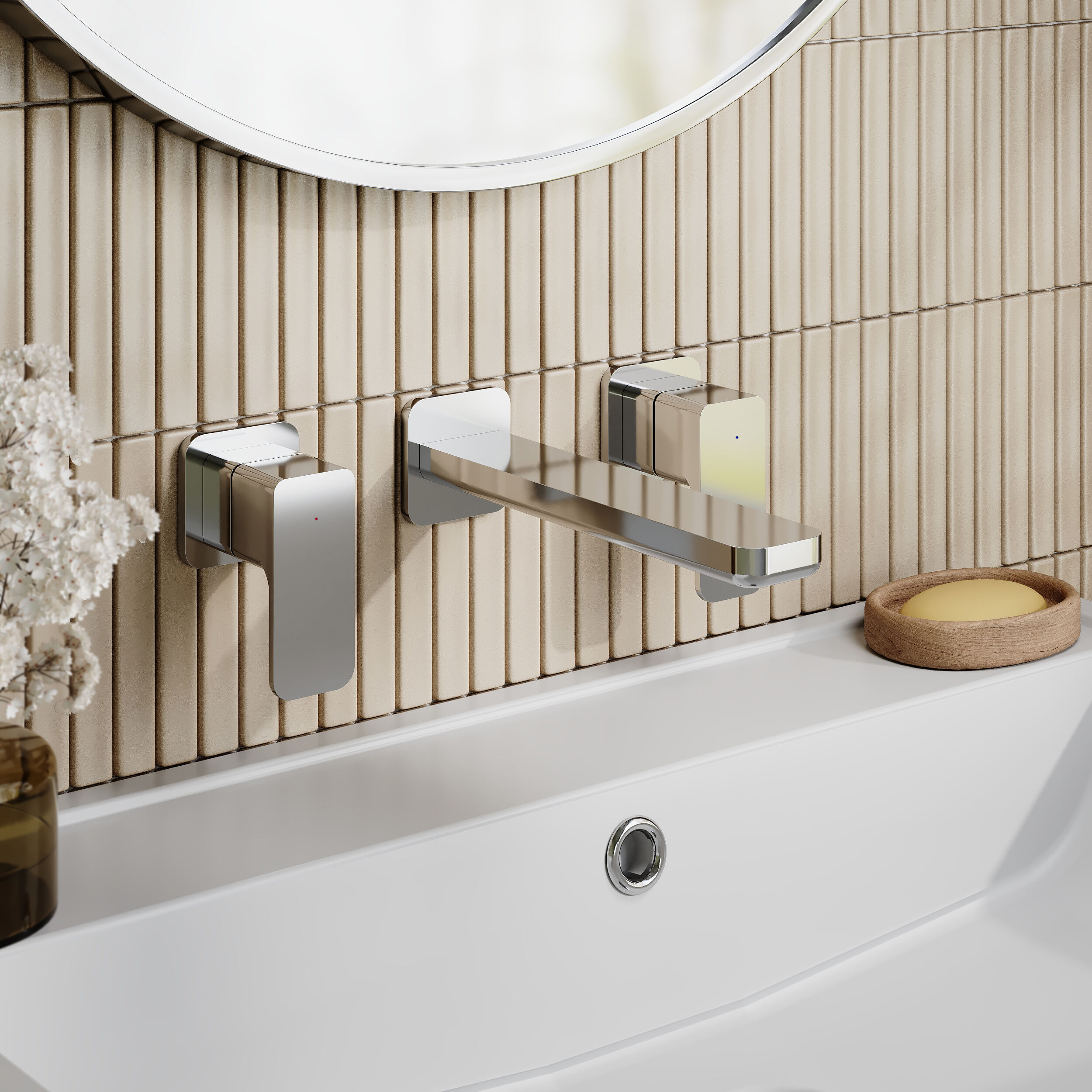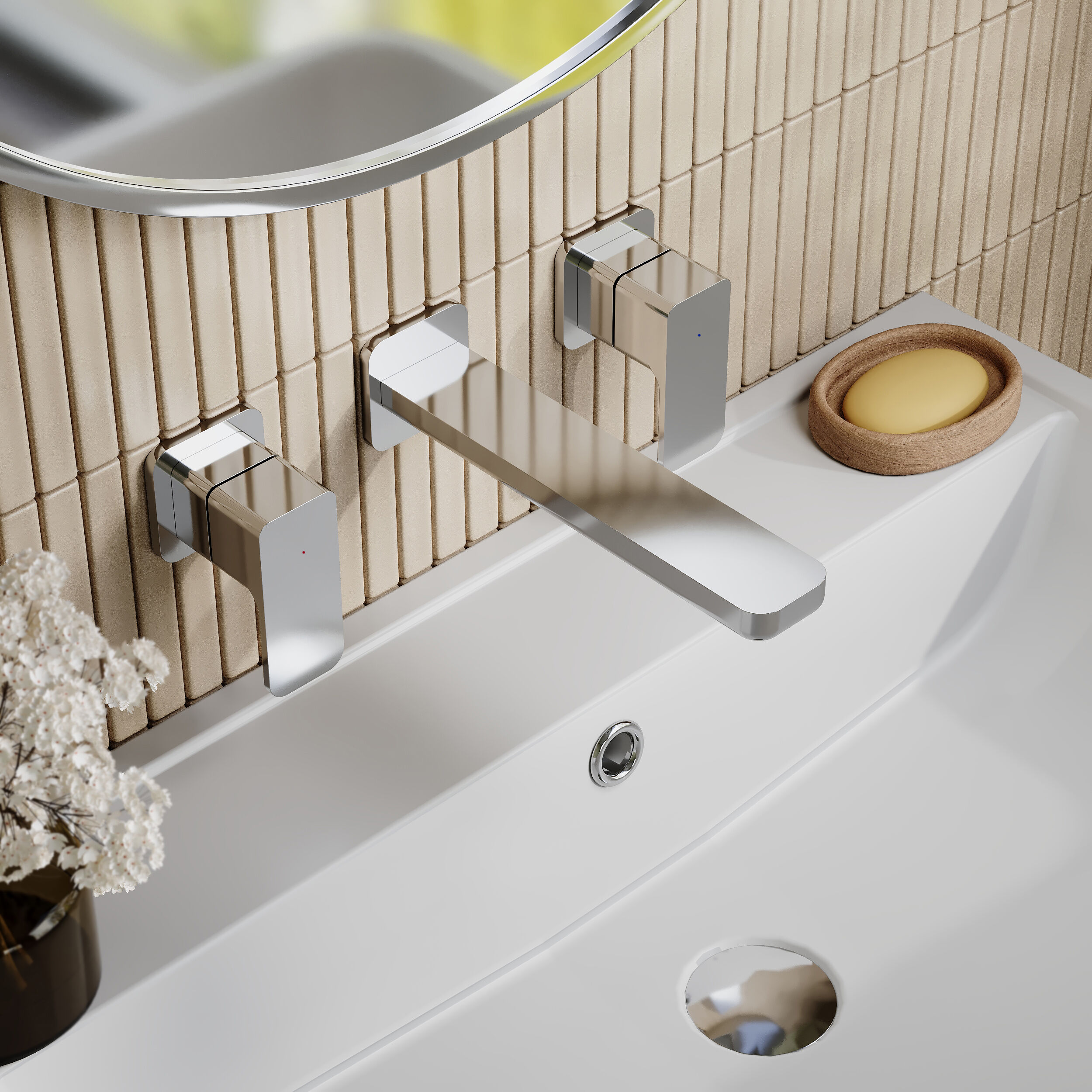 Arvan Wall Mounted 3 Tap Hole Basin Mixer