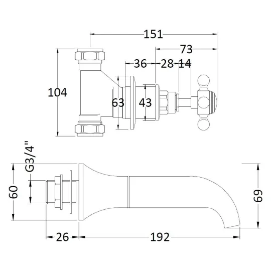 Bayswater 3 Tap Holes Wall Bath Filler - Chrome