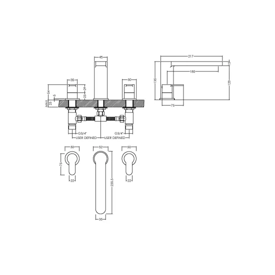 Windon Deck Mounted 3 Tap Hole Bath Filler