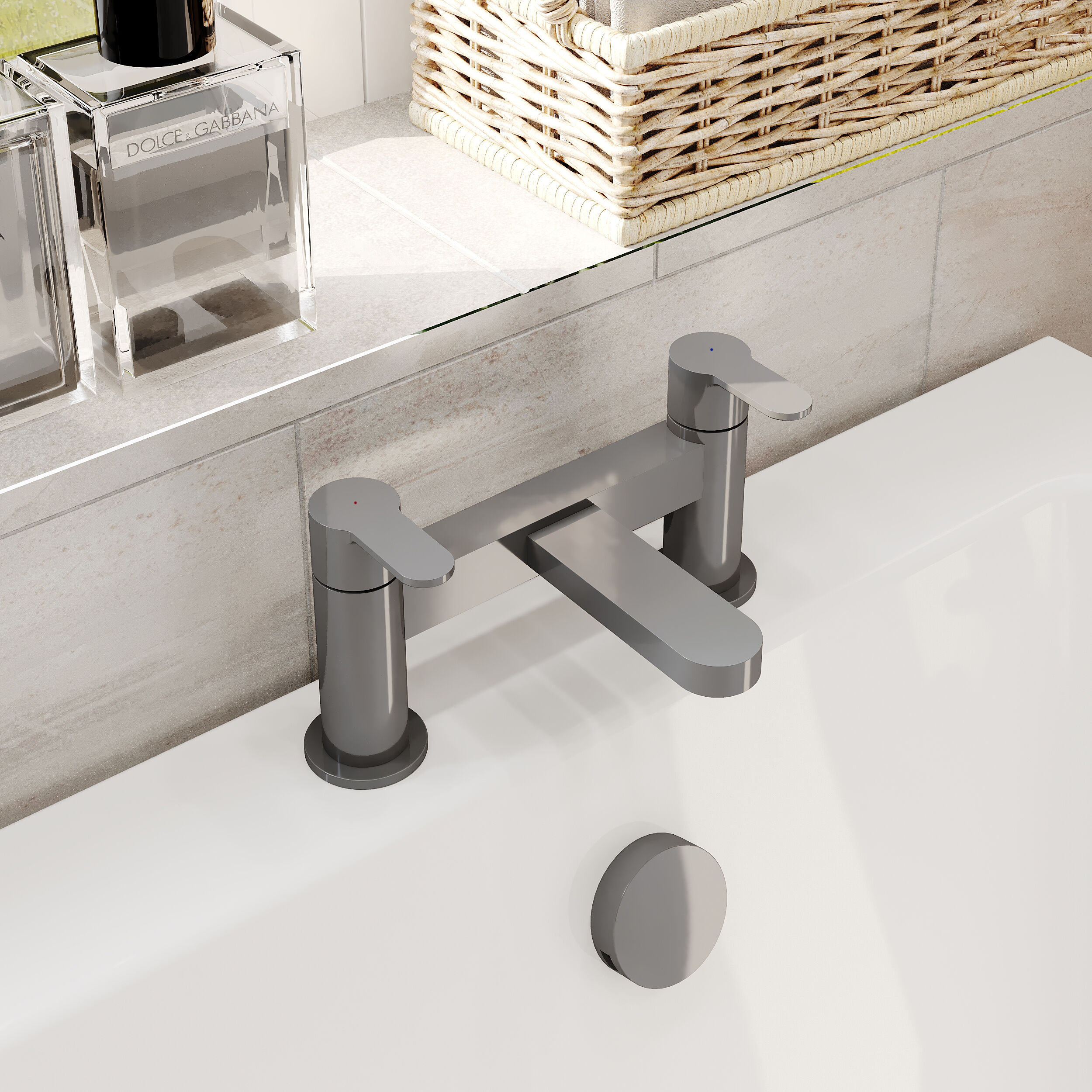 Co-ordinate your brassware with a matching brushed gun metal basin tap and shower