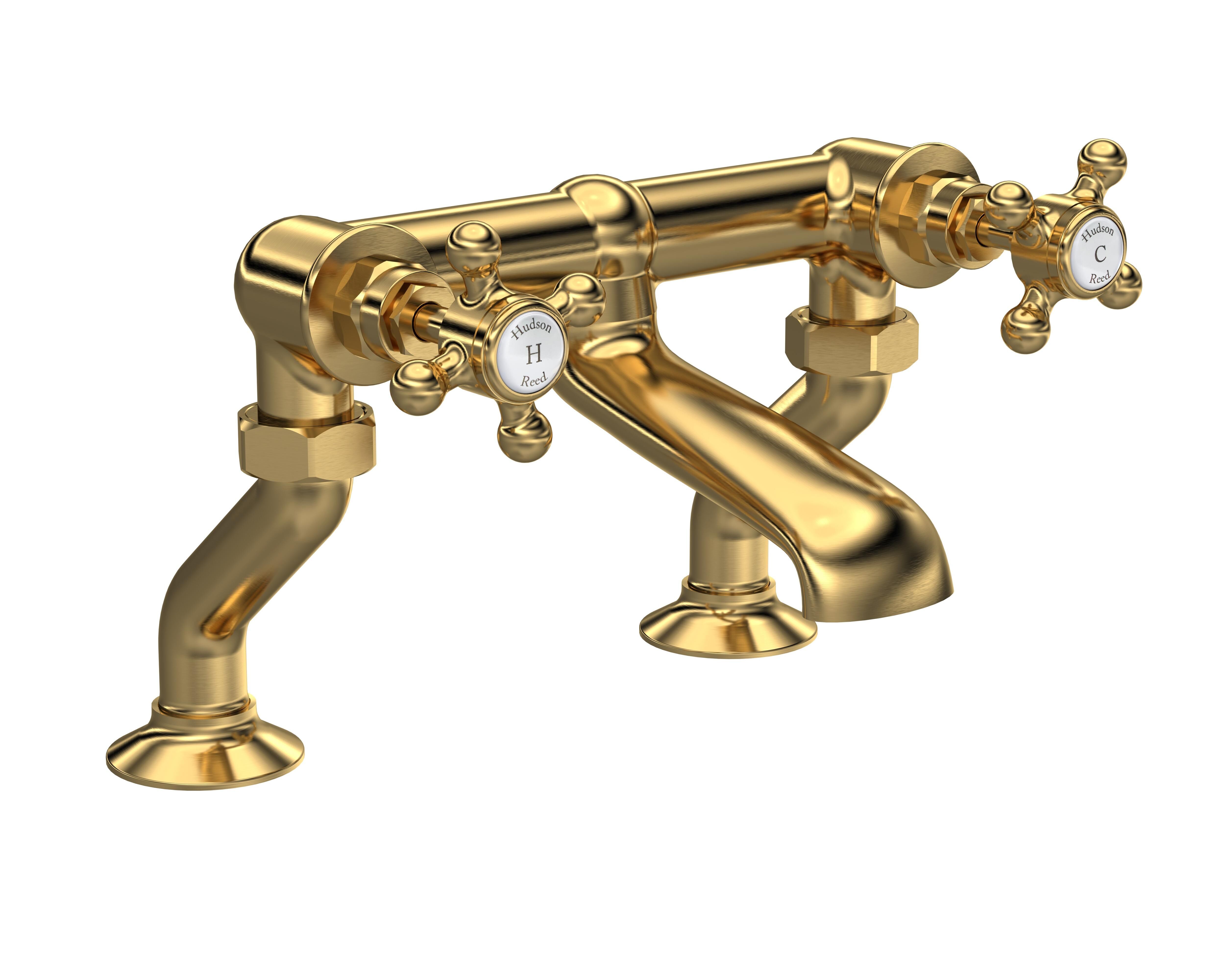 Old London White Topaz With Crosshead Handle Deck Mounted Bath Shower Mixer - Brushed Brass / White
