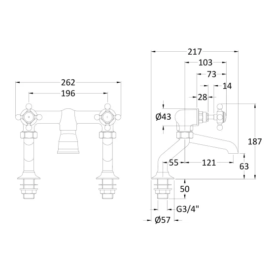 White Topaz With Crosshead Handle Deck Mounted Bath Shower Mixer