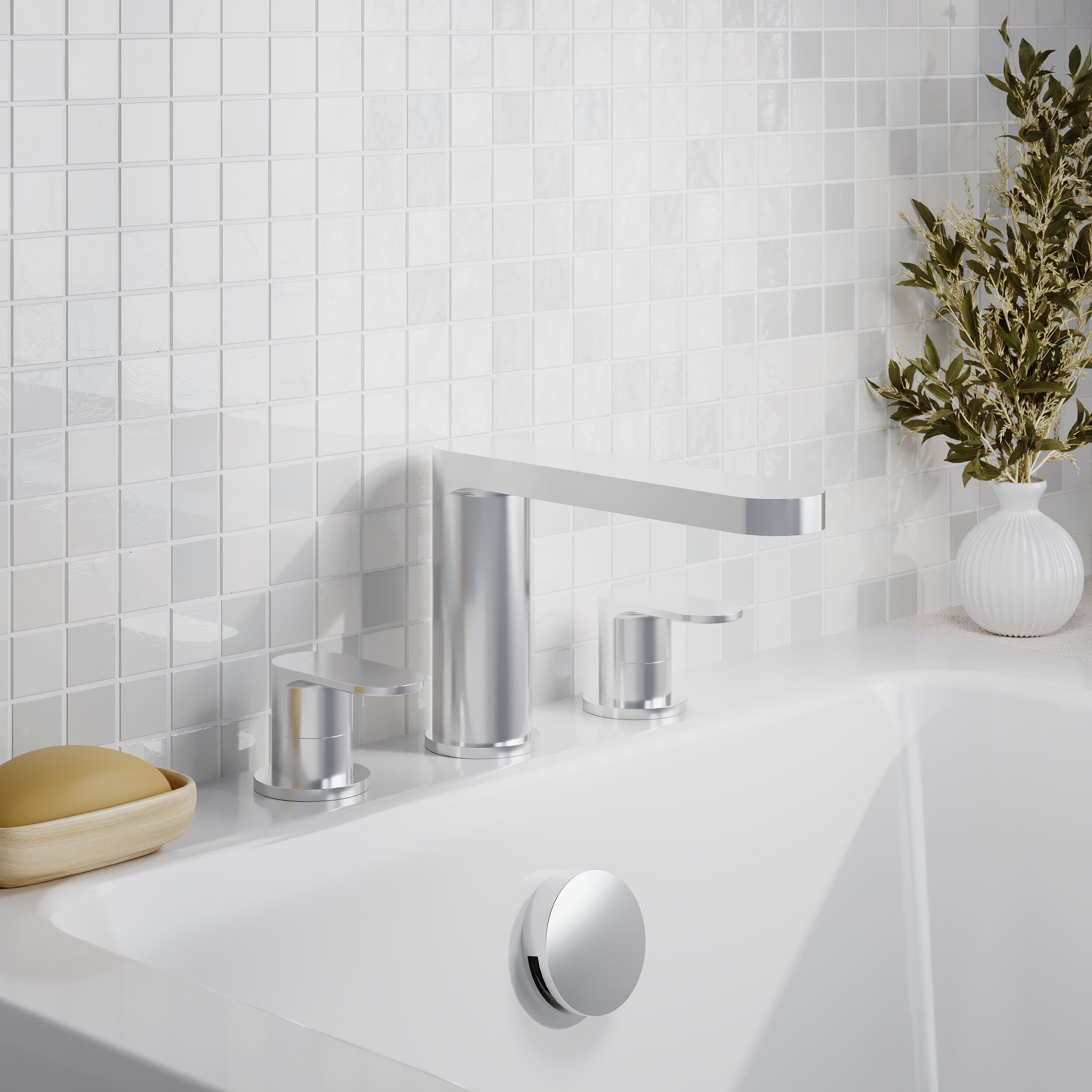 BC Designs Chelmsford Deck Mounted 3 Tap Hole Bath Filler - Brushed Chrome