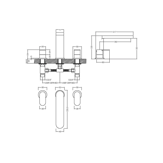 BC Designs Chelmsford Deck Mounted 3 Tap Hole Bath Filler - Brushed Copper