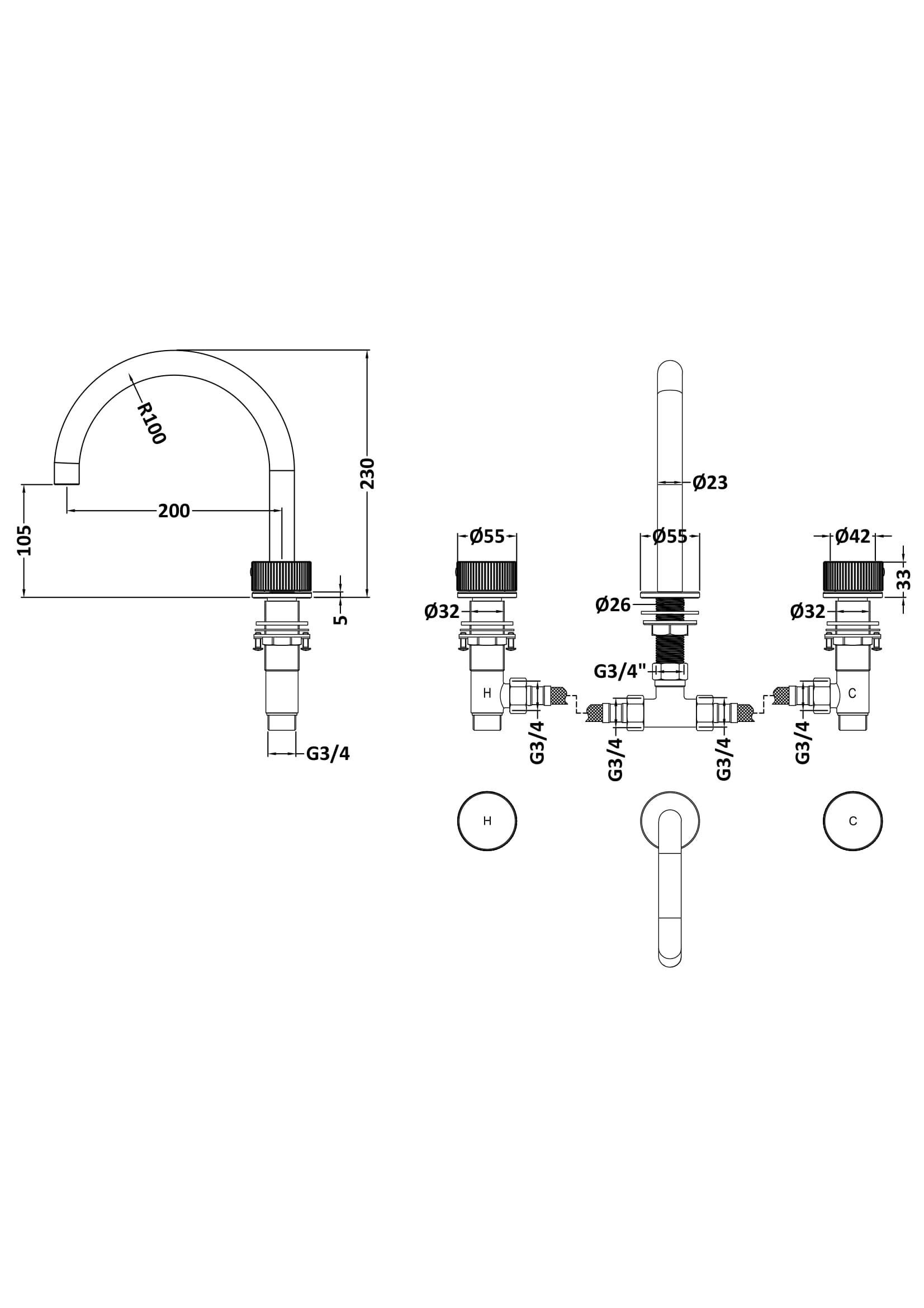 Windon Deck Mounted 3 Tap Hole Bath Filler