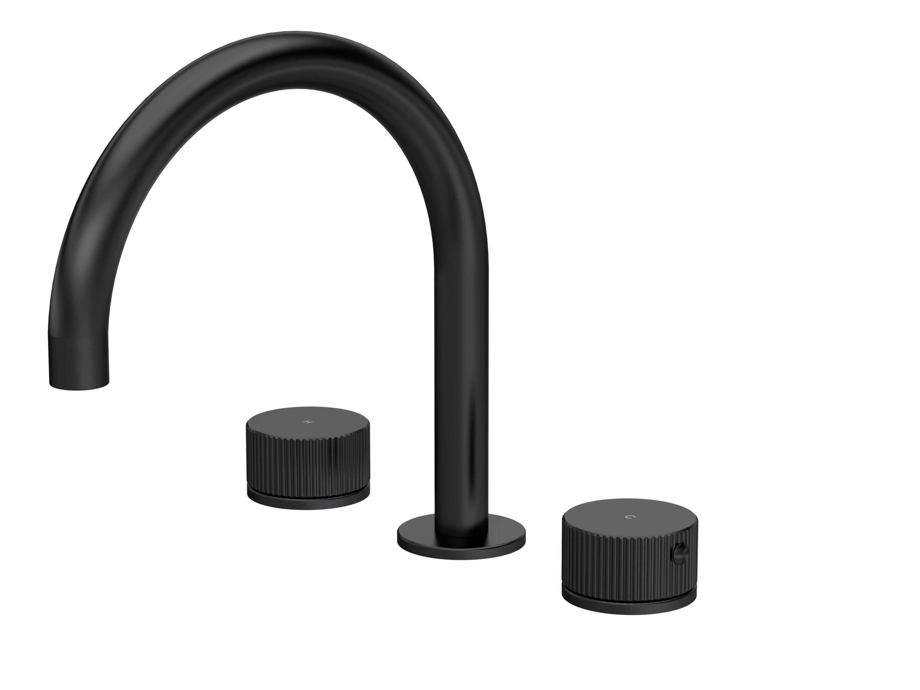 nuie Lux Esker 3 Tap Hole Deck Mounted Bath Mixer (C Spout) - Matt Black