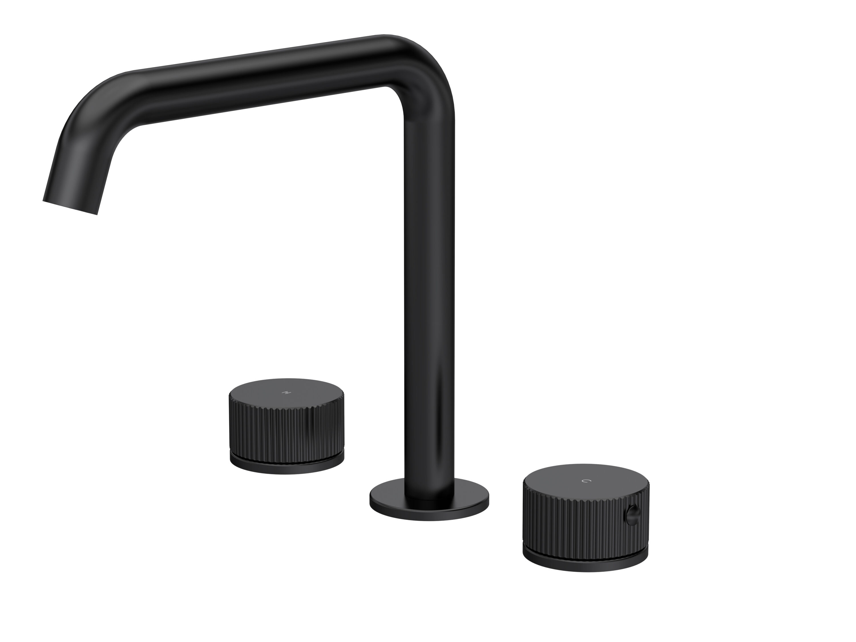 nuie Lux Esker 3 Tap Hole Deck Mounted Bath Mixer (P Spout) - Matt Black