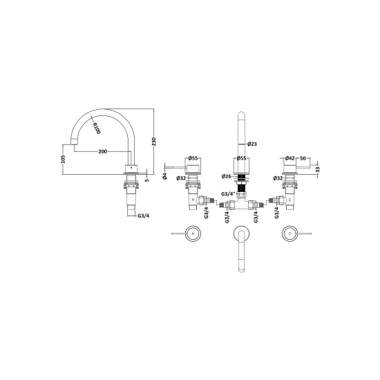 Windon Deck Mounted 3 Tap Hole Bath Filler