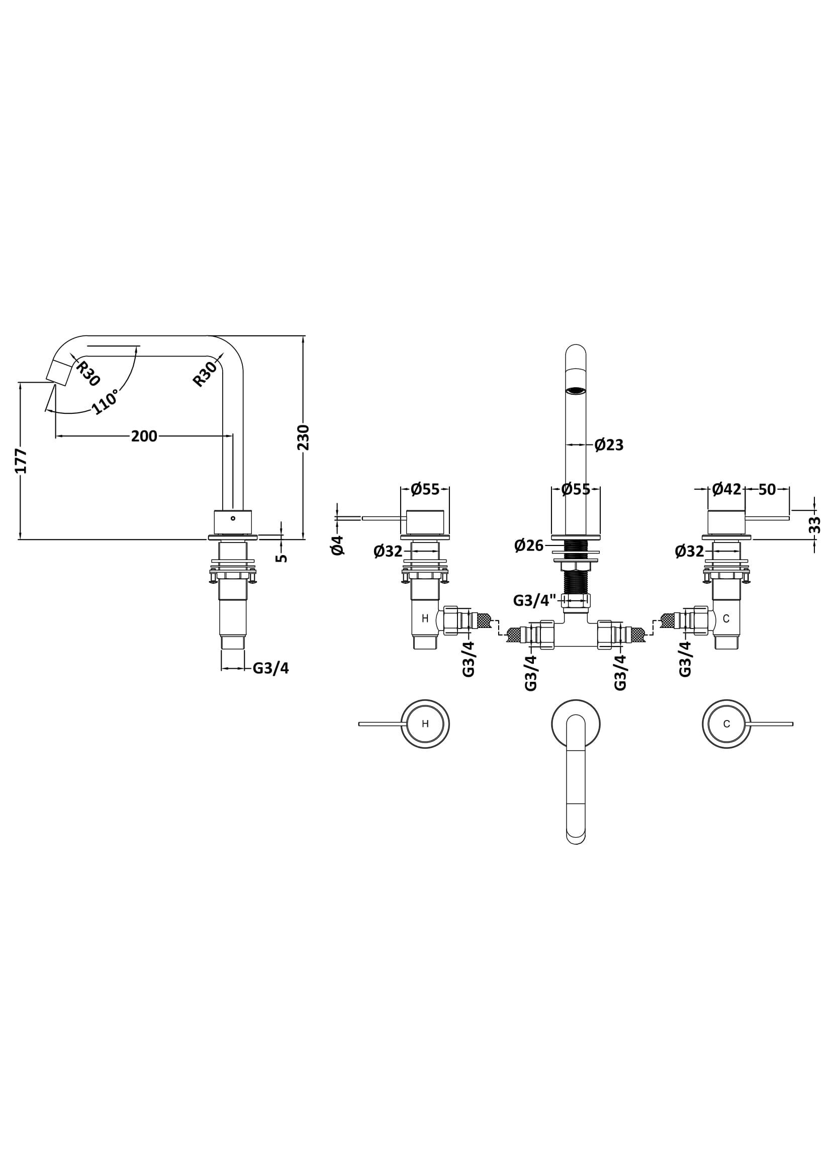 Windon Deck Mounted 3 Tap Hole Bath Filler