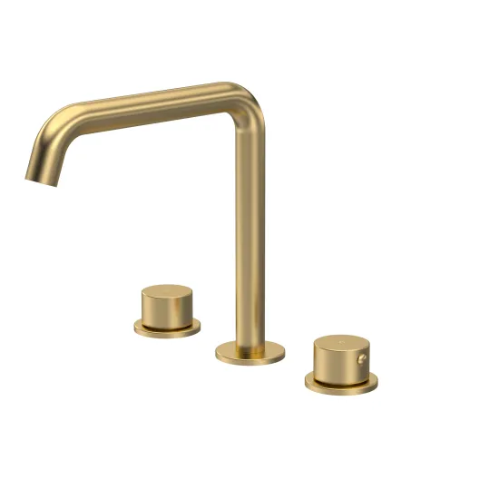 nuie Lux Steeple 3 Tap Hole Deck Mounted Bath Mixer(P Spout) - Brushed Brass
