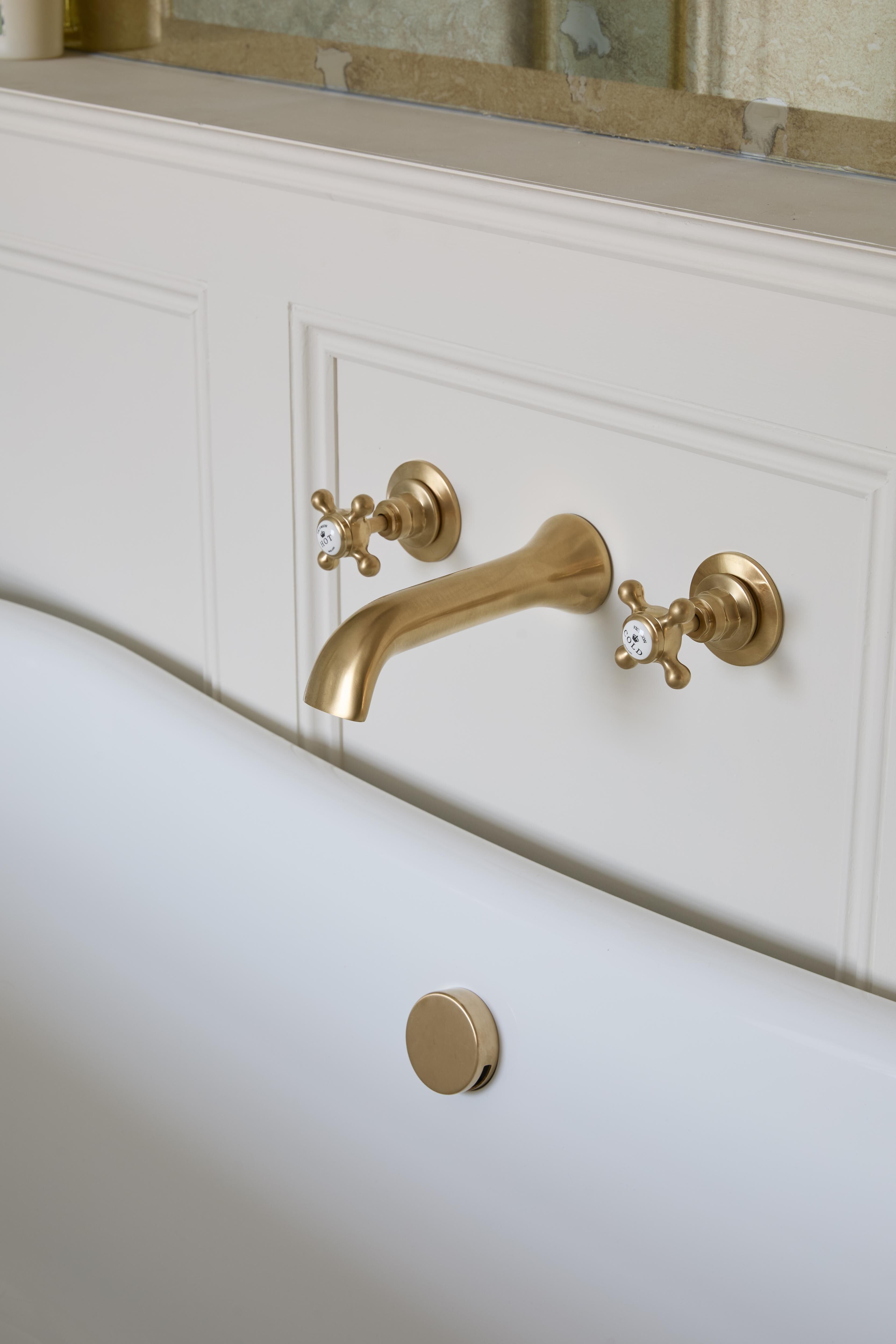 BC Sanitan Victrion Wall Mount Crosshead 3 Tap Hole Bath Filler Tap - Brushed Gold