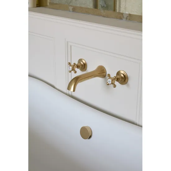 BC Designs Victrion Wall Mount Crosshead 3 Tap Hole Bath Filler Tap - Brushed Gold