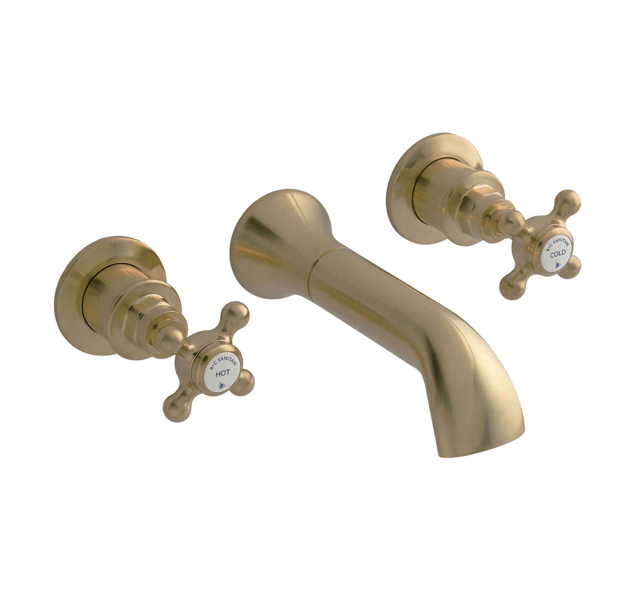 BC Sanitan Victrion Wall Mount Crosshead 3 Tap Hole Bath Filler Tap - Brushed Brass